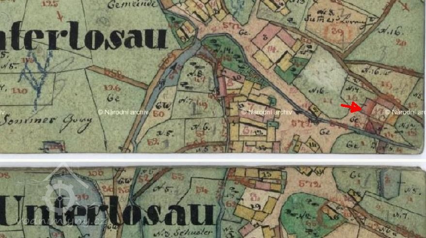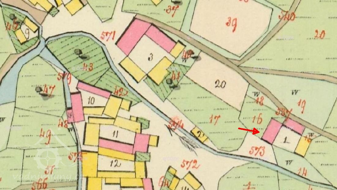 Mlýn je zakreslen na císařských povinných otiscích a indikační skice stabilního katastru. U mlýna je uvedeno č. 1.