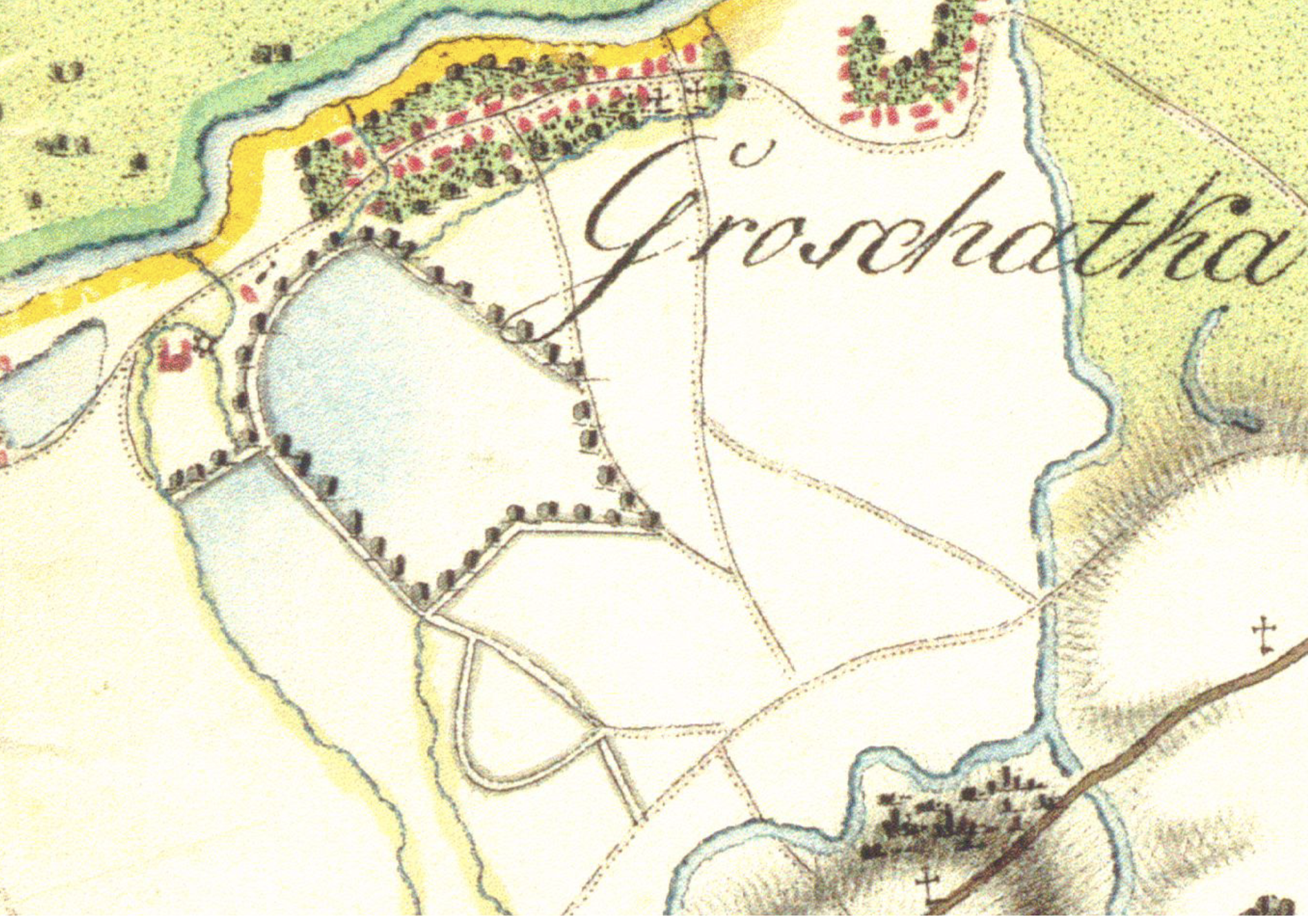 Povodňové události na Lubině a zničení jezu u Dvorku jsou poněkud odlišně zachyceny v knize Geschichte der ehemals sudetendeutschen Gemeinden - Gurtendorf, Engelswald und Rosenthal z r. 1976: "Počátkem srpna r. 1880 byl jez na Dvorku, z kterého vedl náhon na valchu, mlýn a pilu v Petřvaldě a mlýn v Zimném dole, zničen povodní. Východně od něj byl potom postaven nový, opět dřevěný jez. V r. 1914 došlo za vysoké vody k protržení náhonu východně od jezu a voda při každé zvýšené vodě prudkým proudem vytékala průrvou ven a odnášela půdu v okolí. Po 1. světové válce v letech 1919-1920 nebyl jez už postaven a náhon zůstal od řeky odpojen. Valcha byla přestavěna na truhlářství s benzínovým pohonem strojů, mlýn a pila v Petřvaldě byly zastaveny a mlýn v Zimném dole přešel též na motorový pohon."