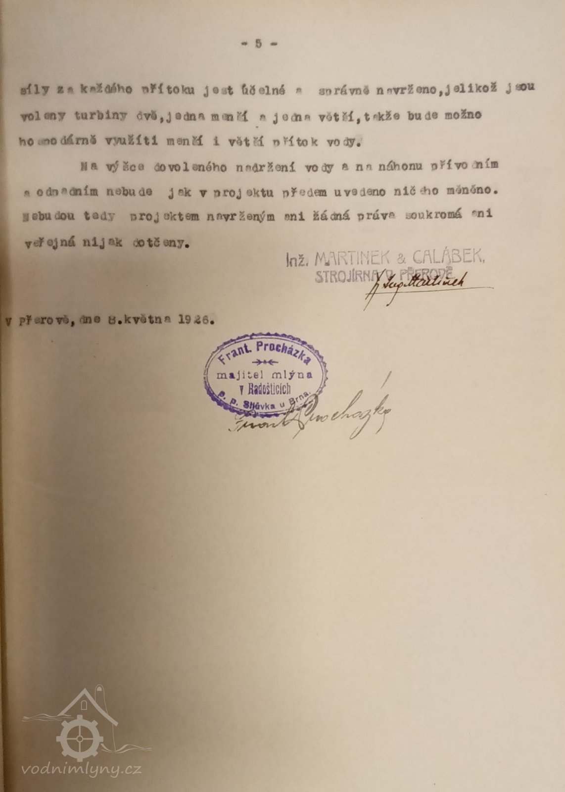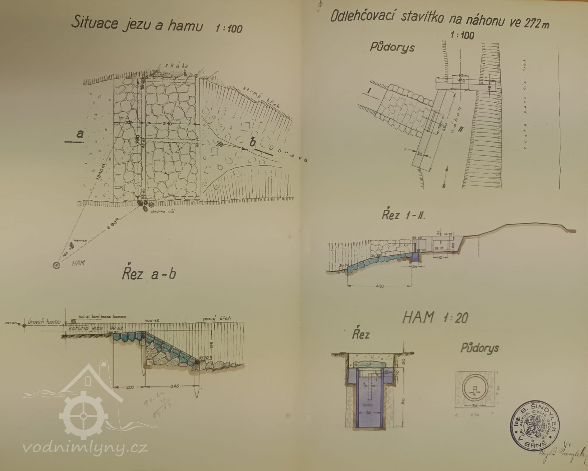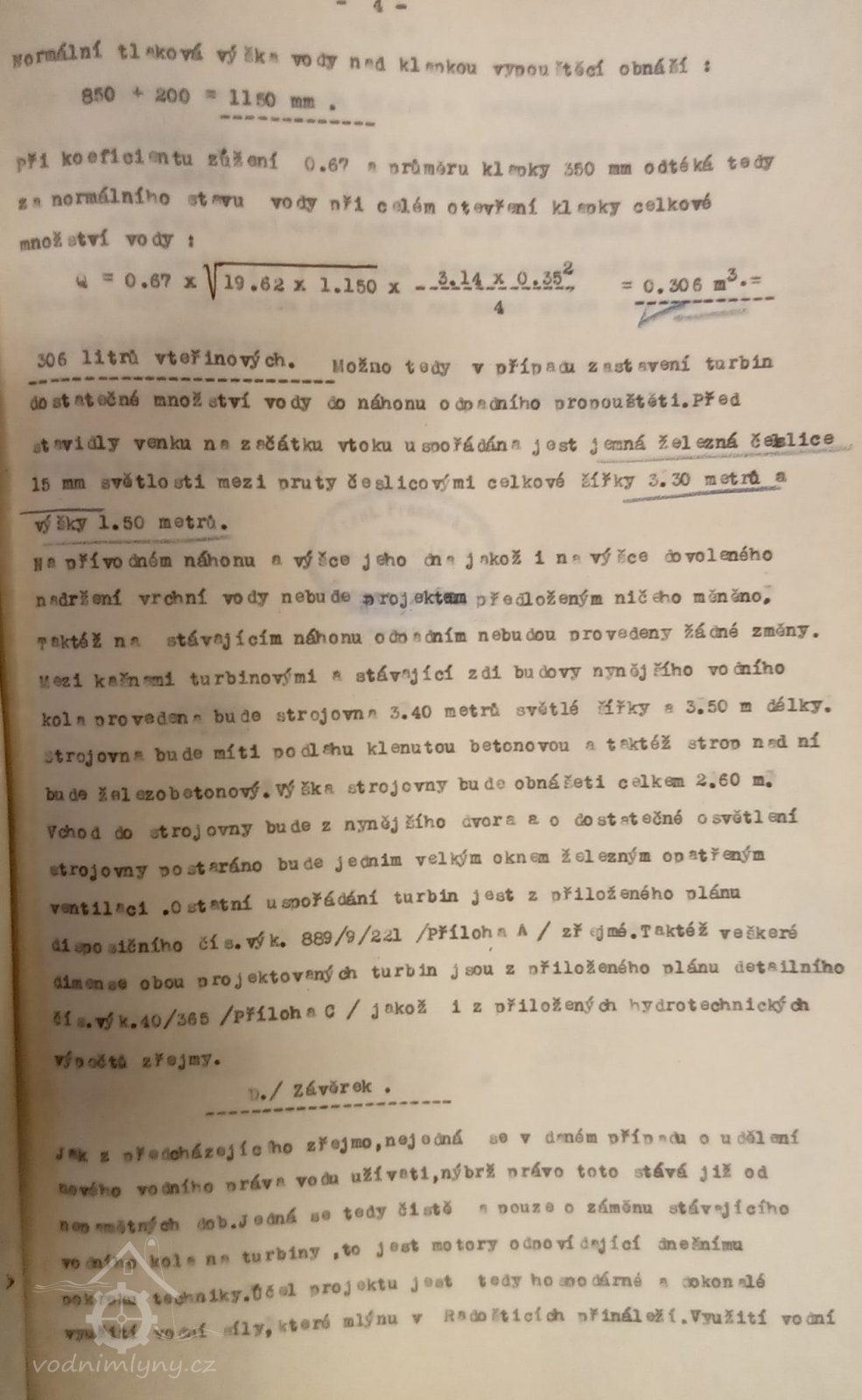 2. hltnost 0,3 m3/s, spád 5,25 m, výkon 16 HP