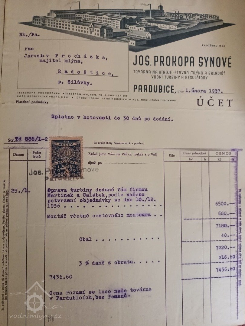 1937 opravována firmou Jos. Prokopa synové