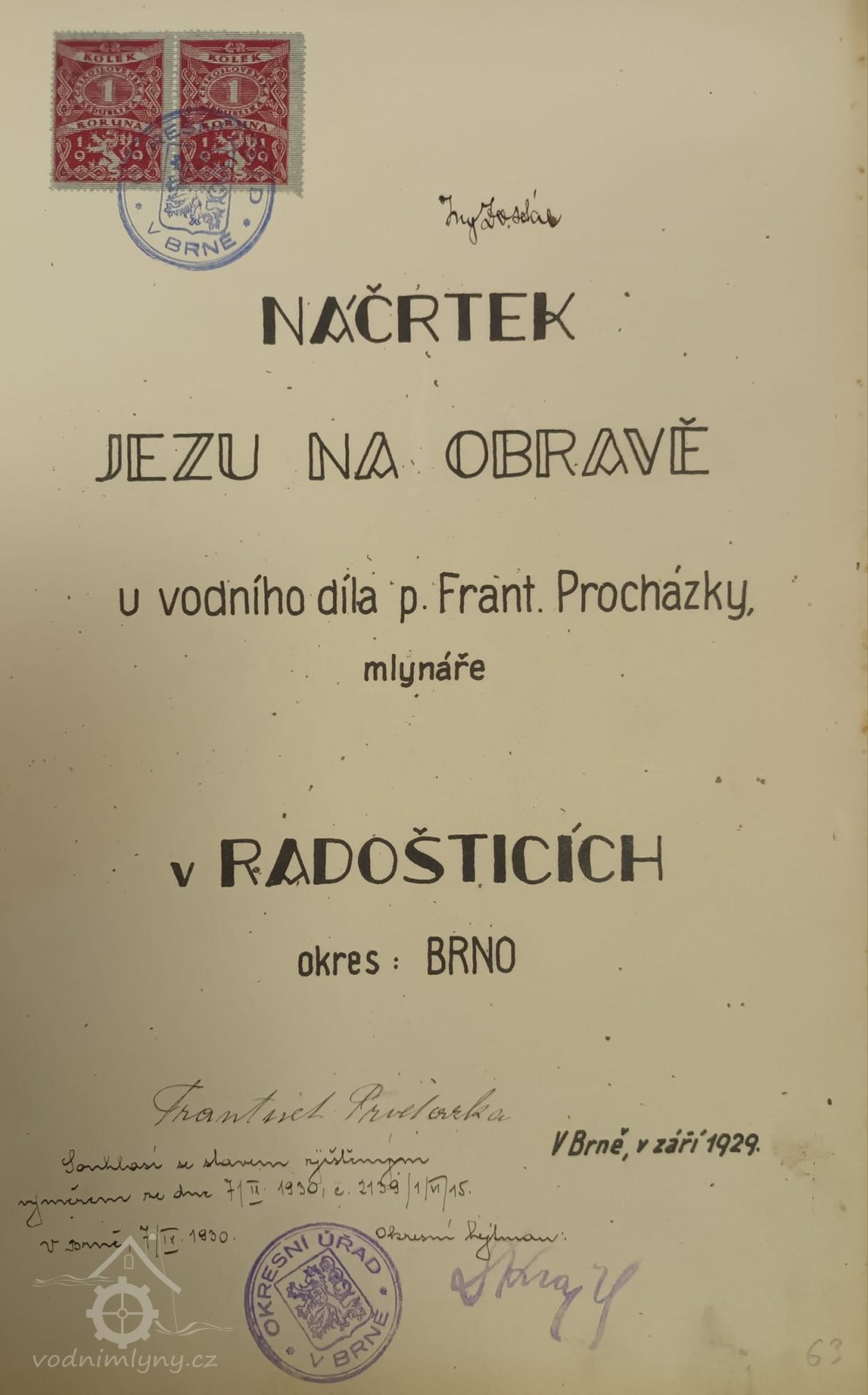 1926 - 1930 majitel František Procházka, manž. roz. Vítámvásová z Prštic