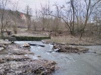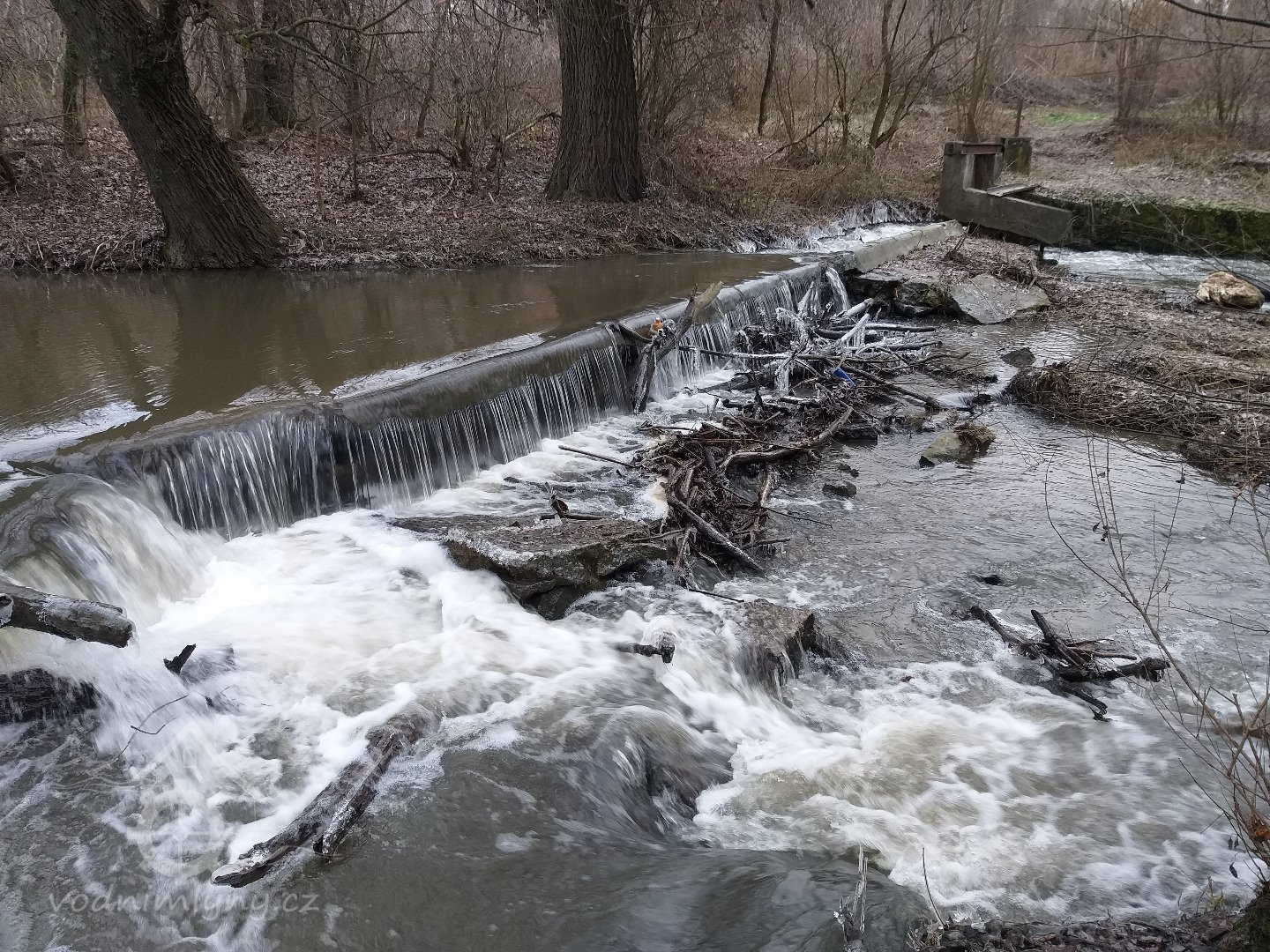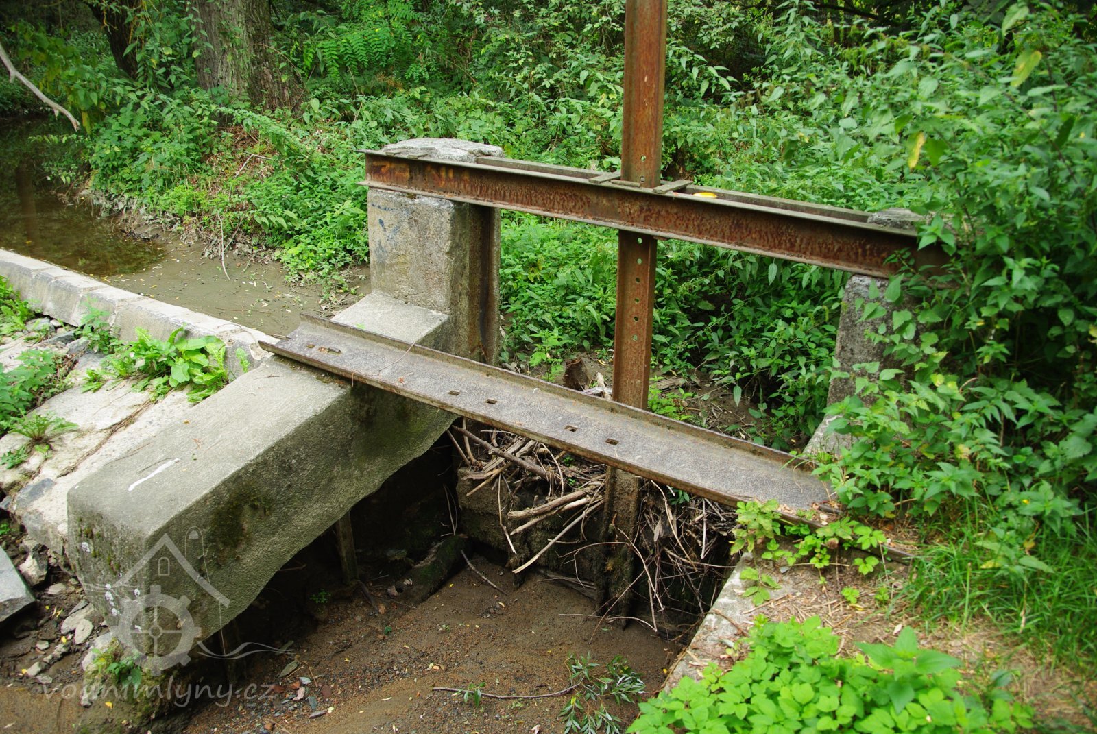 U mlýna zarostlý náhon, stavidlo, kašna (HŠ)