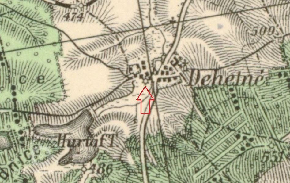 Budova bývalého mlýna čp. 15, nyní ev. č. 1, stojí v západní části obce Dehetná.