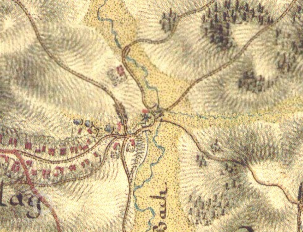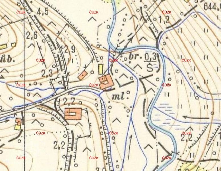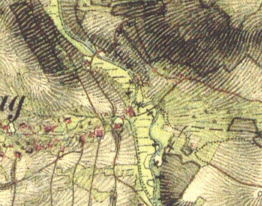 Meziříčský mlýn s pilou se dvěmi koly na svrchní vodu.