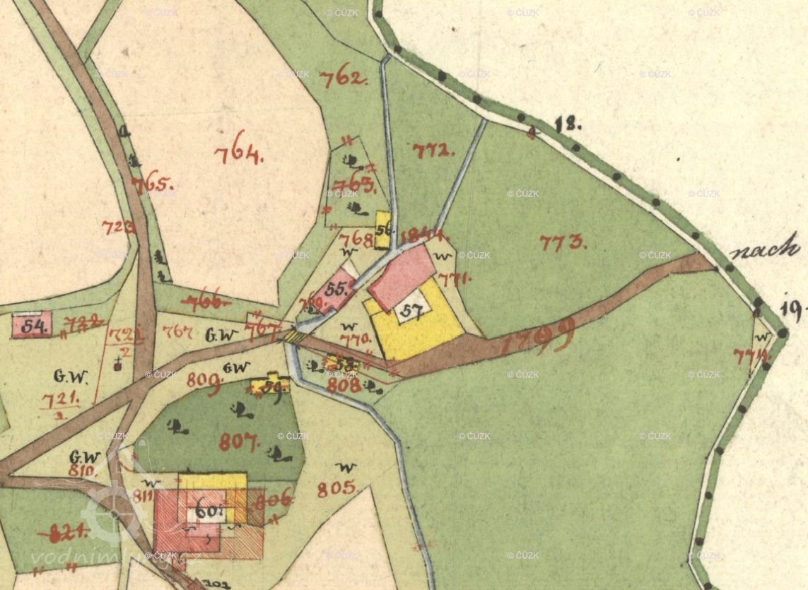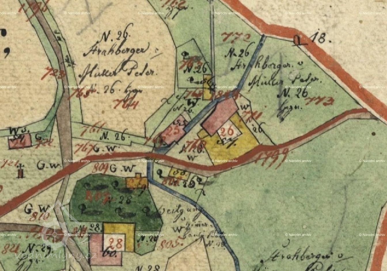 Sčítání lidu 1921: mlynář Johann Glaser (nar. 1876), manželka Marie (nar. 1875), syn Josef (nar. 1902), stárek Ottomar Antrasehko.