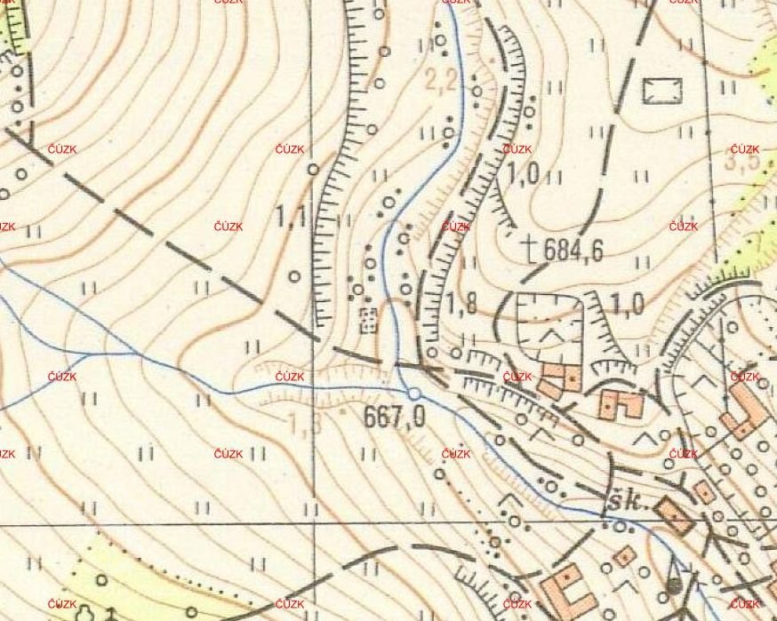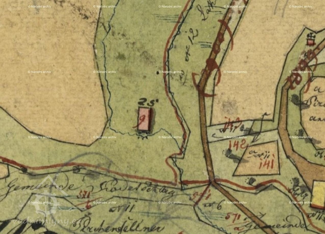 Zaniklý mlýn o jednom kole na svrchní vodu.