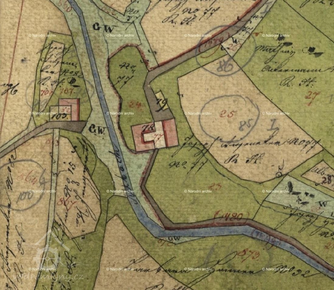 Sčítání lidu 1921: mlynář Josef Böhm (nar. 1889, na mlýně od 1918), manželka Theresia (nar. 1890), děti Berta (nar. 1919), Alois (nar. 1920).