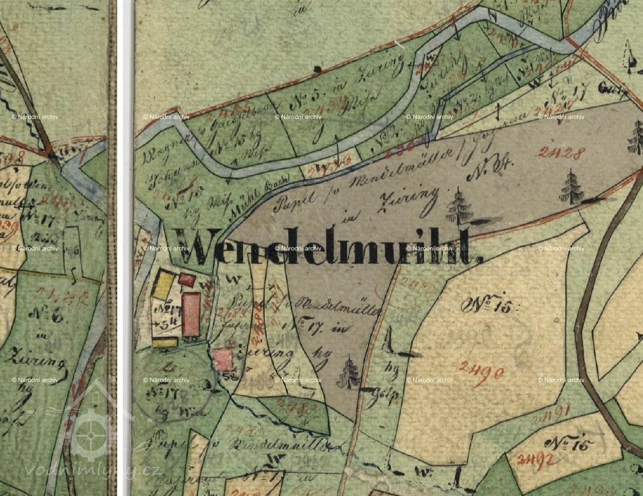 Sčítání lidu 1921: pod čp. 17 (v soupise čp. 65): mlynář Johann Pfaudlbauer (nar. 1902), majitelem mýna jeho otec Thomas Pfaudlbauer (nar. 1865) - rolník.