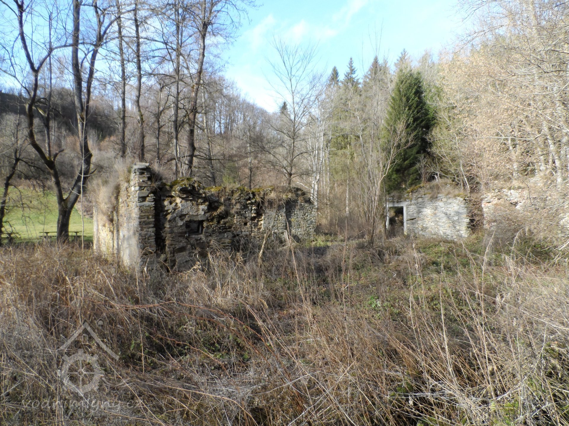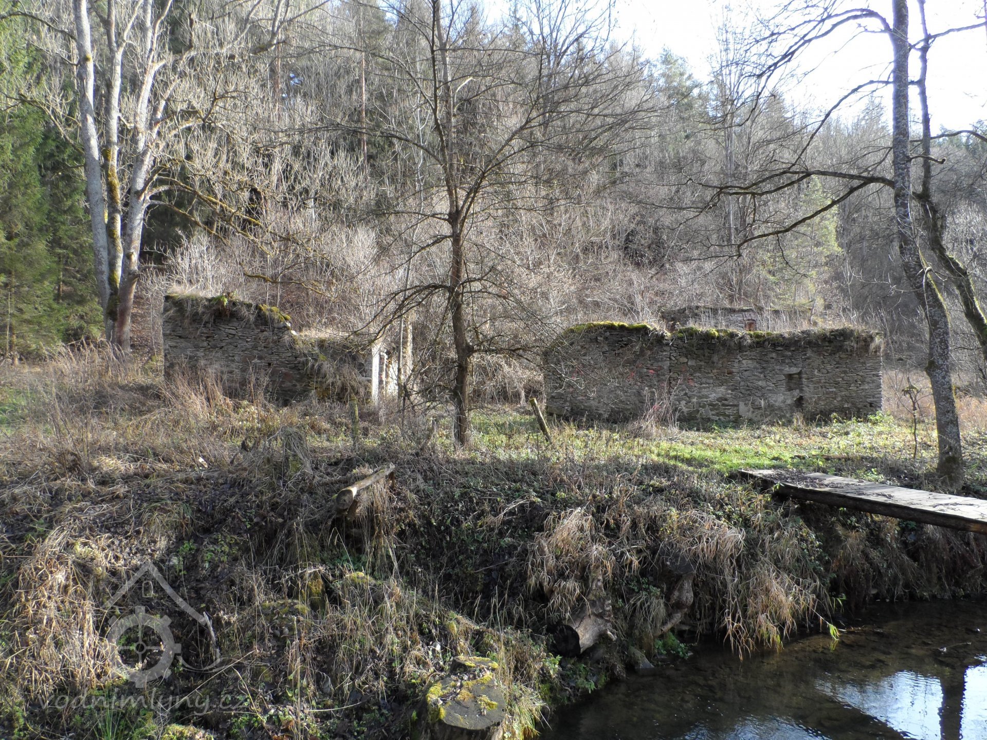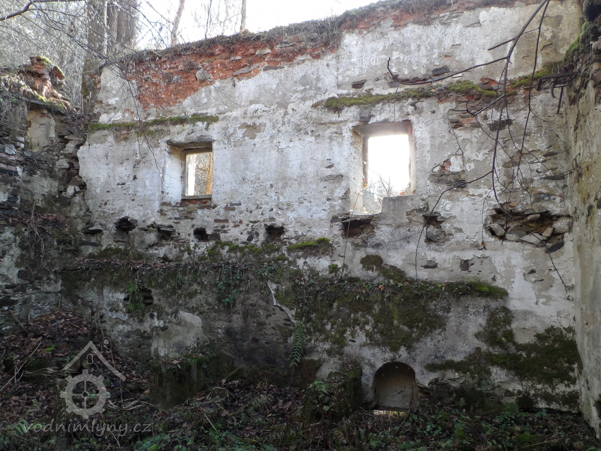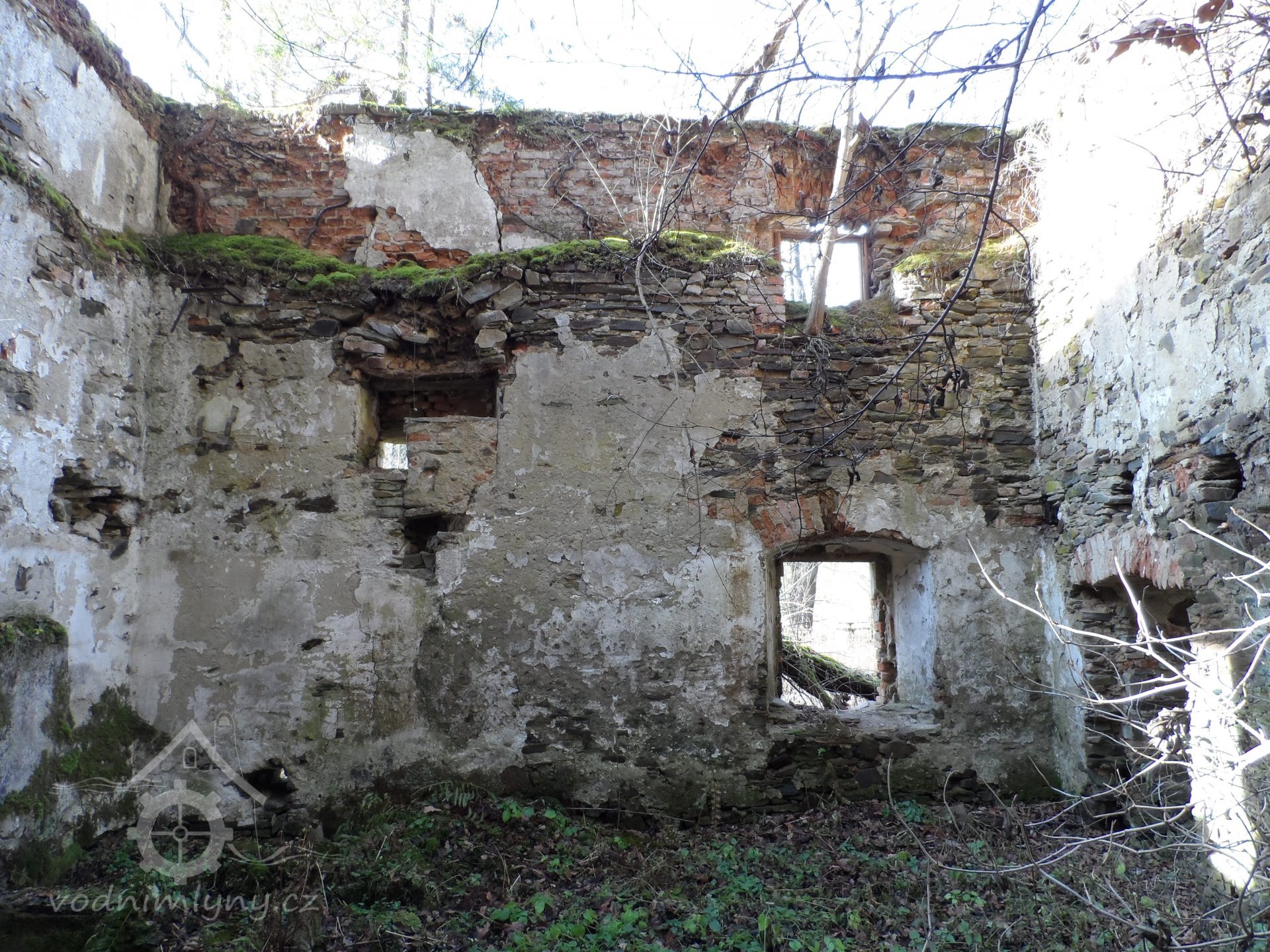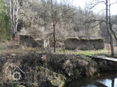 Zřícenina mlýna o dvou kolech na svrchní vodu.