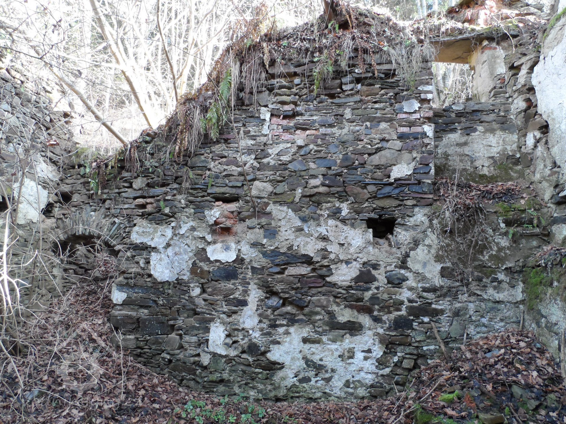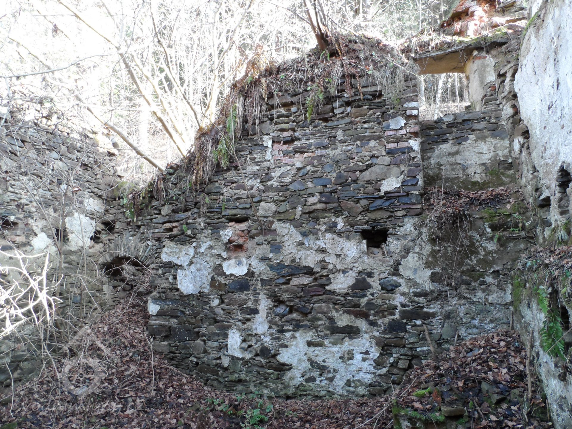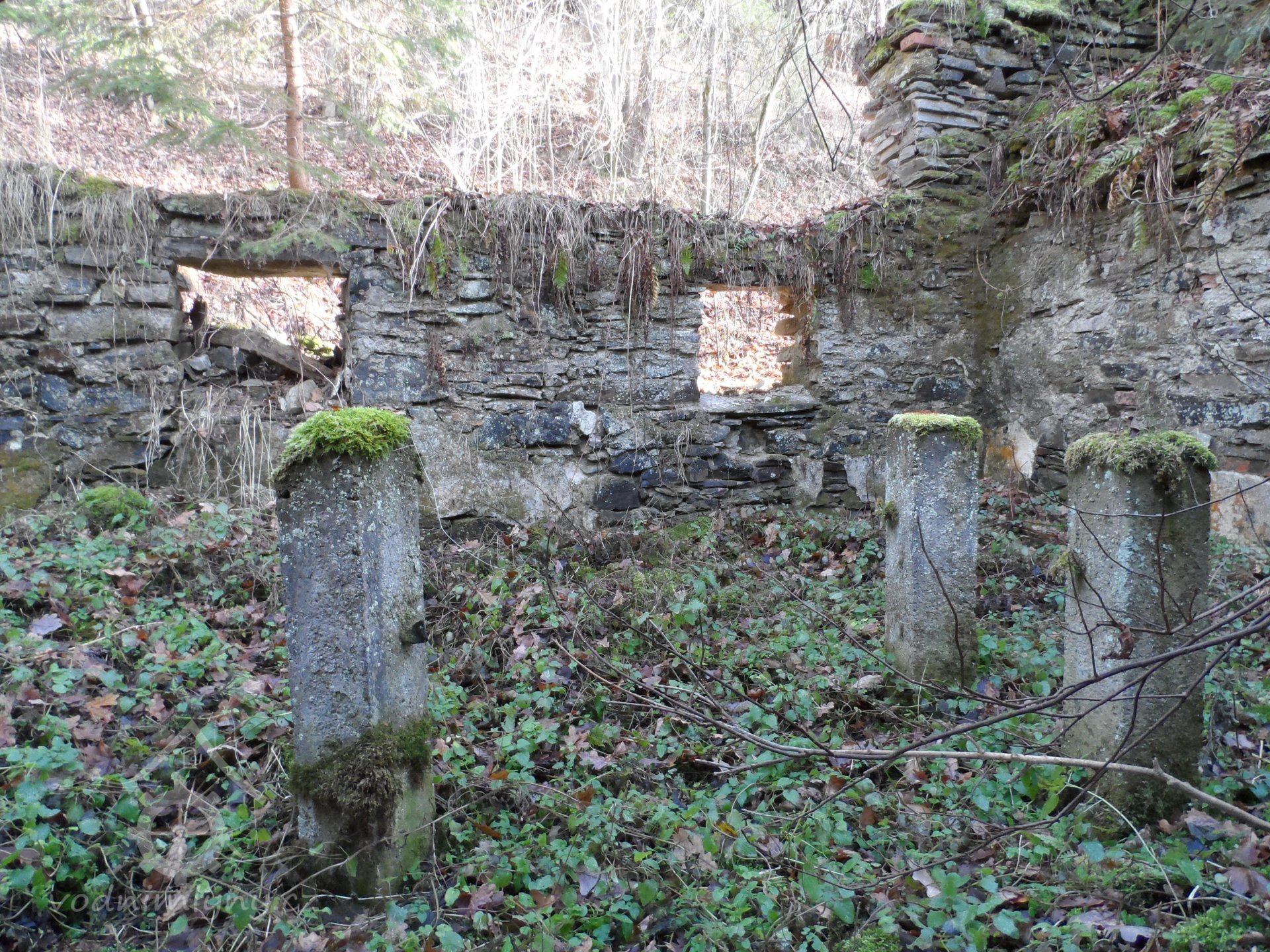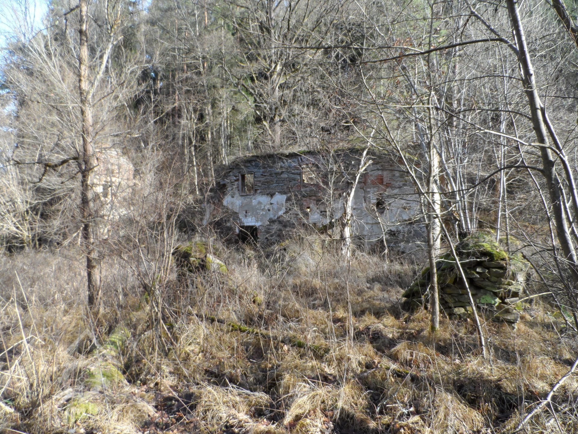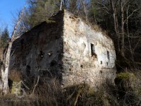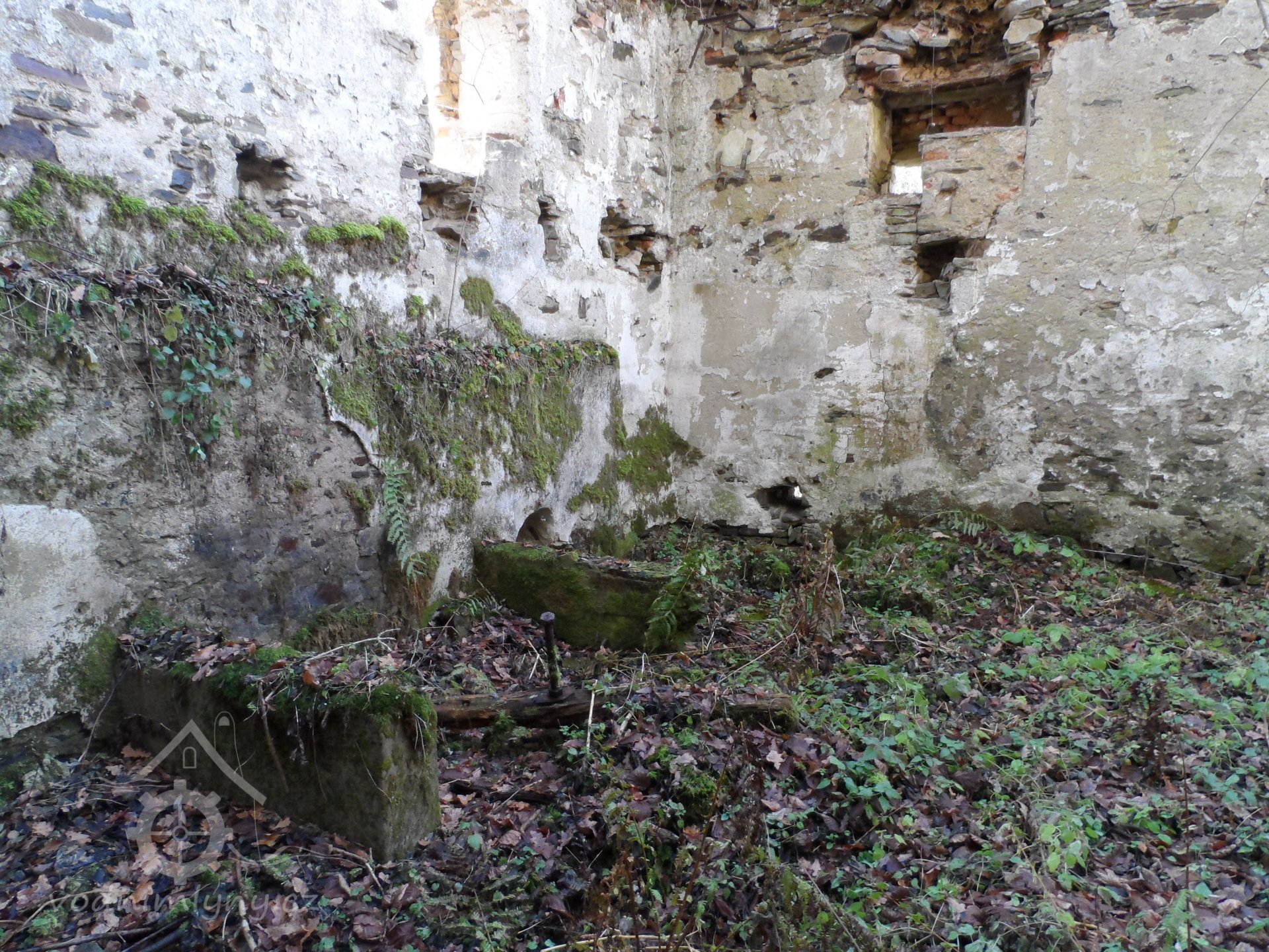 Zřícenina mlýna o dvou kolech na svrchní vodu.
