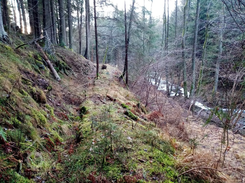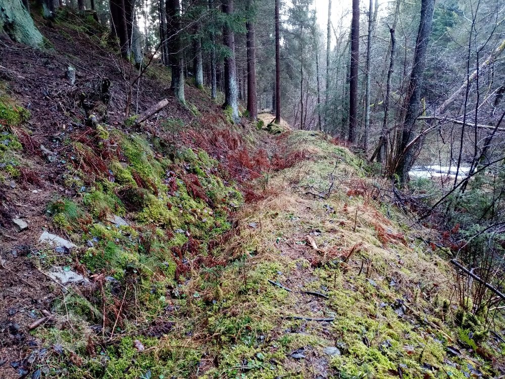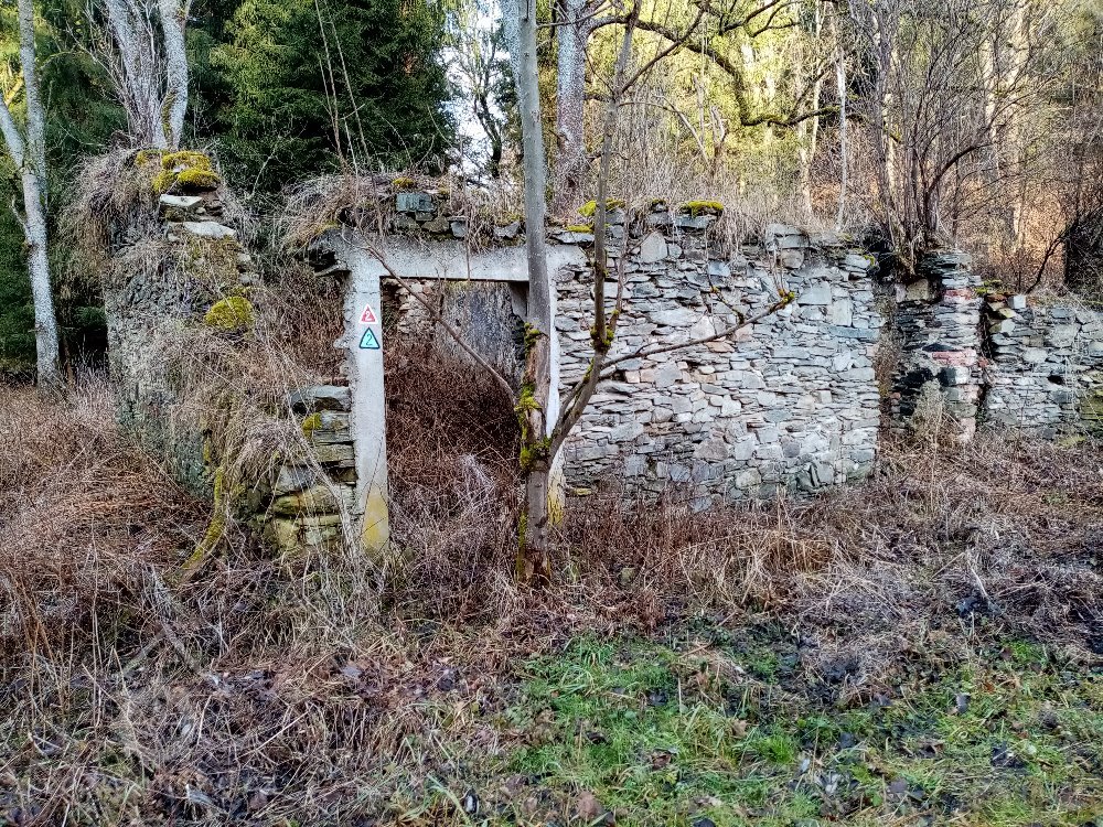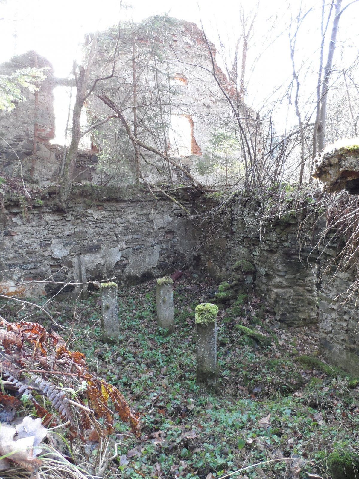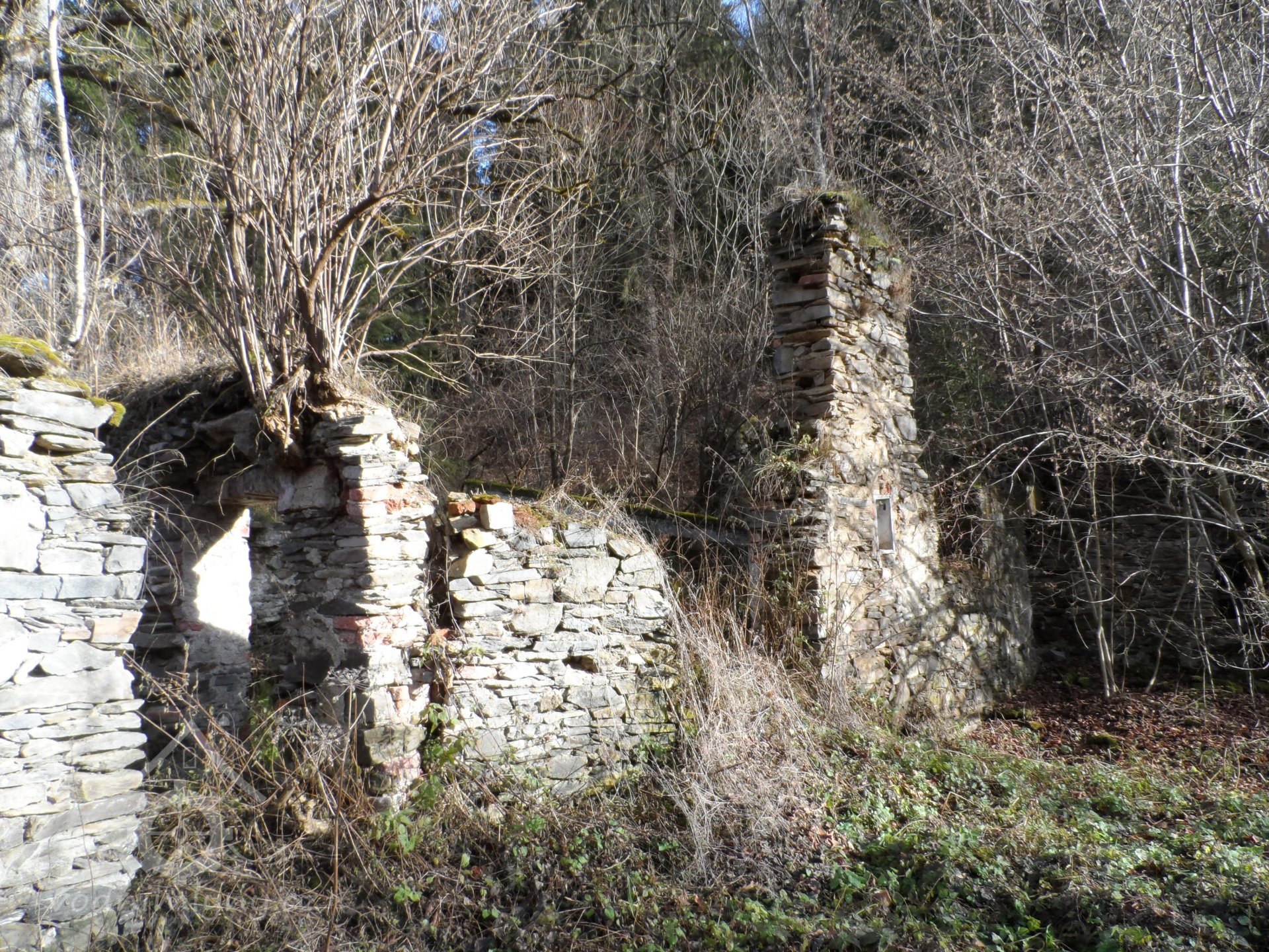 Zřícenina mlýna o dvou kolech na svrchní vodu.