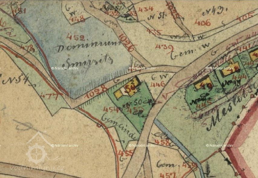 Kolem roku 1850 vlastnil mlýn Jiří Čapek, po němž byl mlynářem v čp. 50 Vincenc Čapek, jenž zemřel 19. srpna 1860. Chvíli na mlýně hospodařila vdova Anna Čapková, která se 1. října 1861 vdala za mlynářského tovaryše a tkalce Aloise Jara z Chlístova čp. 12. Roku 1875 se dostala usedlost do veřejné dražby. Všechny tři termíny - 9. července, 3. srpna a 3. září však nebyly ohledně jejího prodeje úspěšné. K němu došlo až v následujícím roce. Její odhad tehdy činil 2 438 zlatých a termíny dražeb byly vyhlášeny na 24. června, 24. července a 24. srpna. Mletí bylo ukončeno po zrušení rybníku koncem 19. století (zaznamenán byl ještě ve vojenské mapě z roku 1871, ale o 6 let později již ne). Z výše zmíněného můžeme dovodit to, že do dražby se čp. 50 dostalo přímo po zrušení rybníku, když se zde již nedala provozovat mlynářská živnost. Tehdy také muselo dojít ke zděné přístavbě objektu, jež je dodatečně zakreslena do reambulace stabilního katastru z roku 1873. V roce 1880 patřilo stavení Vincenci Čepovi, jehož stejnojmenný syn později pracoval jako posel rurální pošty.