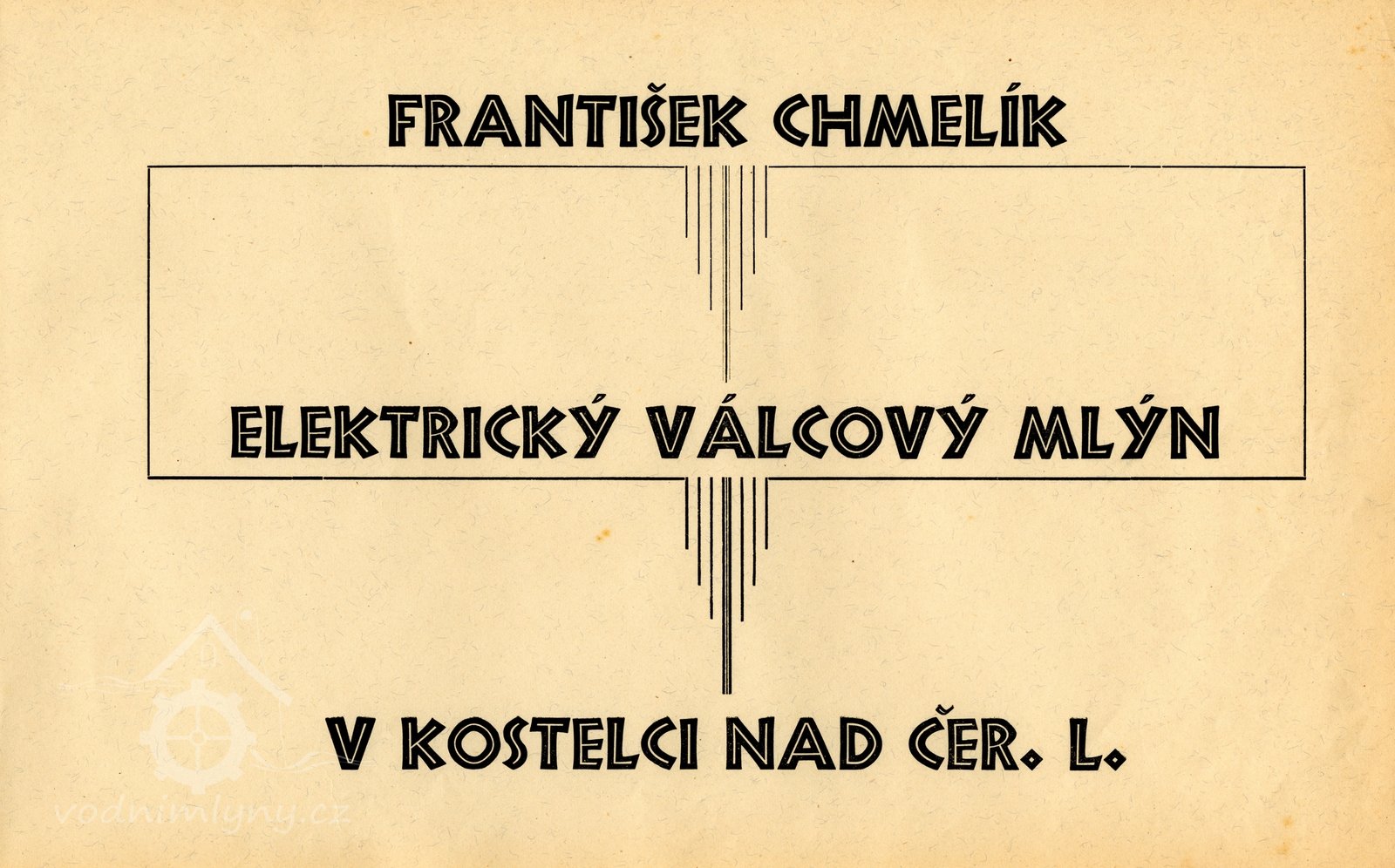 Mlýn připadl Františku Chmelíkovi mladšímu a jeho ženě Marii 14. listopadu 1914. Ti zde vybudovali mlýn a pekárnu.