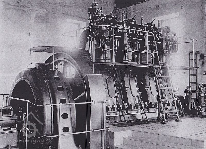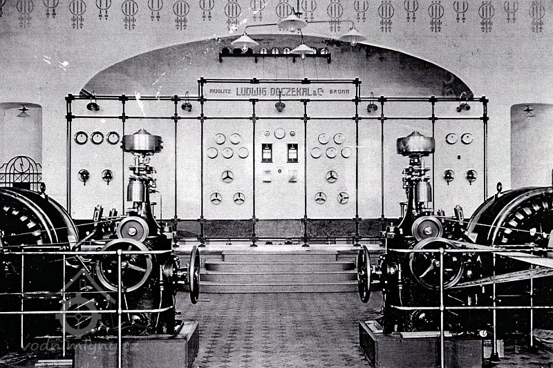 1909–1910 mezi mlýnicemi postavena strojovna elektrárny