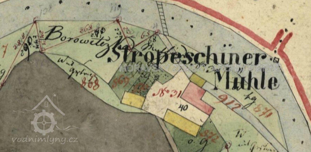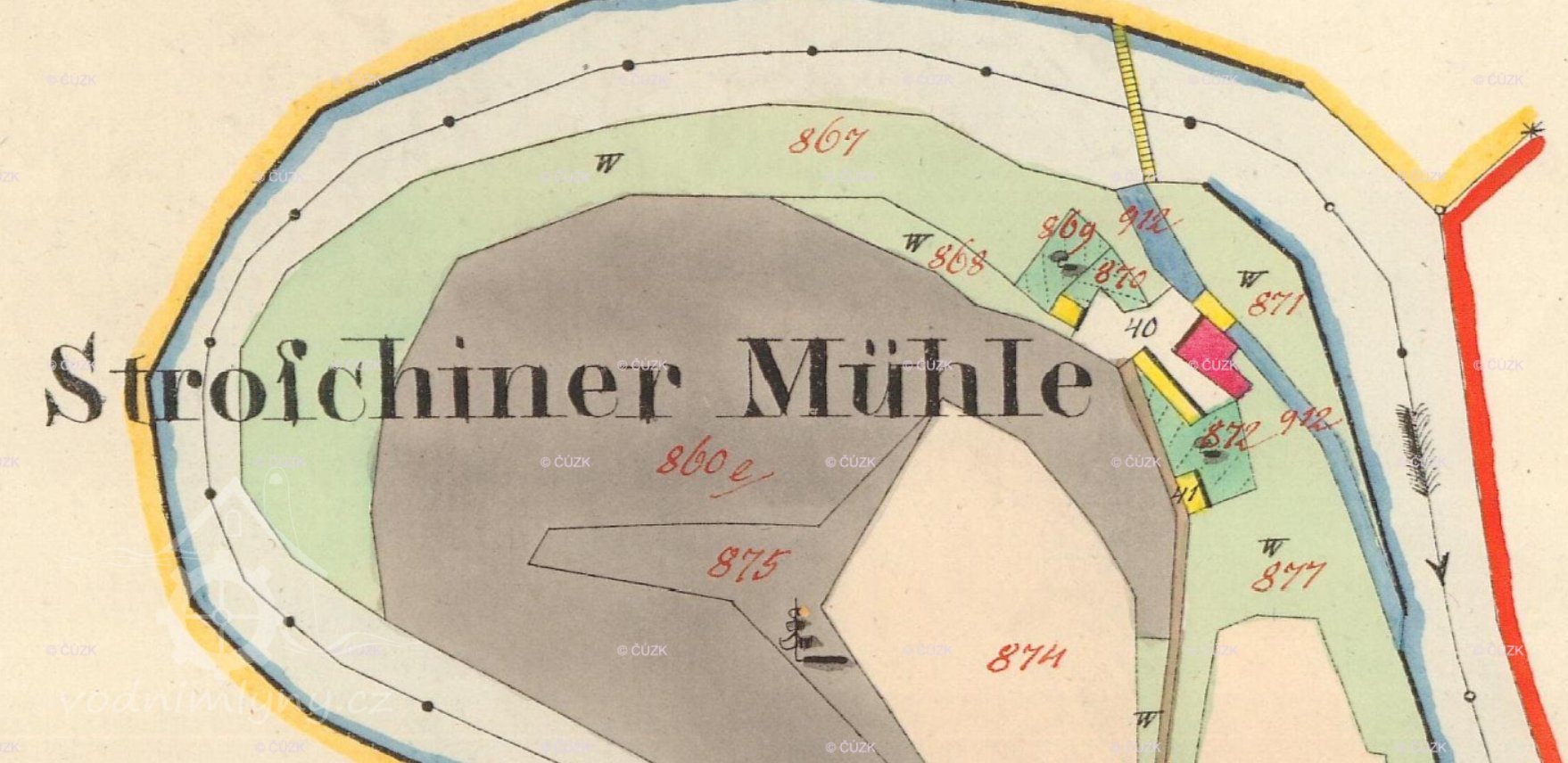 Vlasákův mlýn, (Stropešínský). Mlýn byl poháněn kolem na tzv. horní vodu, vybaven kamenným mlýnským složením a mlel pšenici i žito, také šrotoval obilí. Při mlýně bývala i pila. Jako vedlejší činnost měl mlynář Vlasák těžbu písku v jezu na řece Jihlavce.
