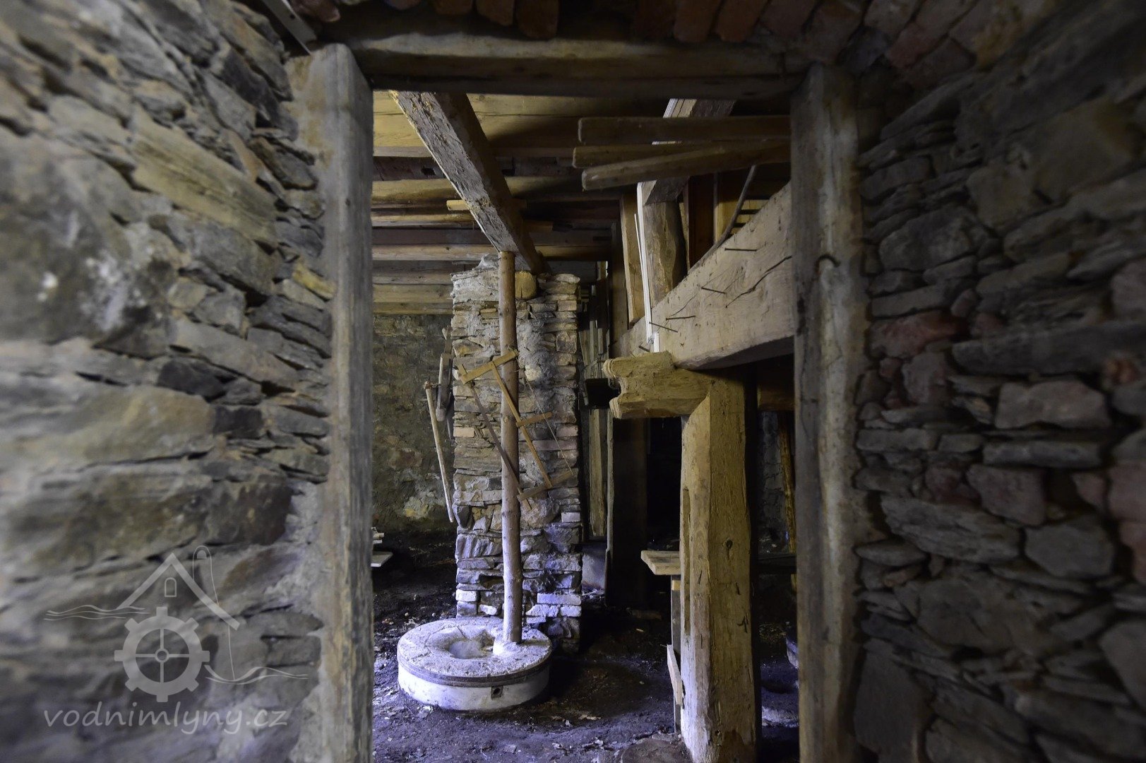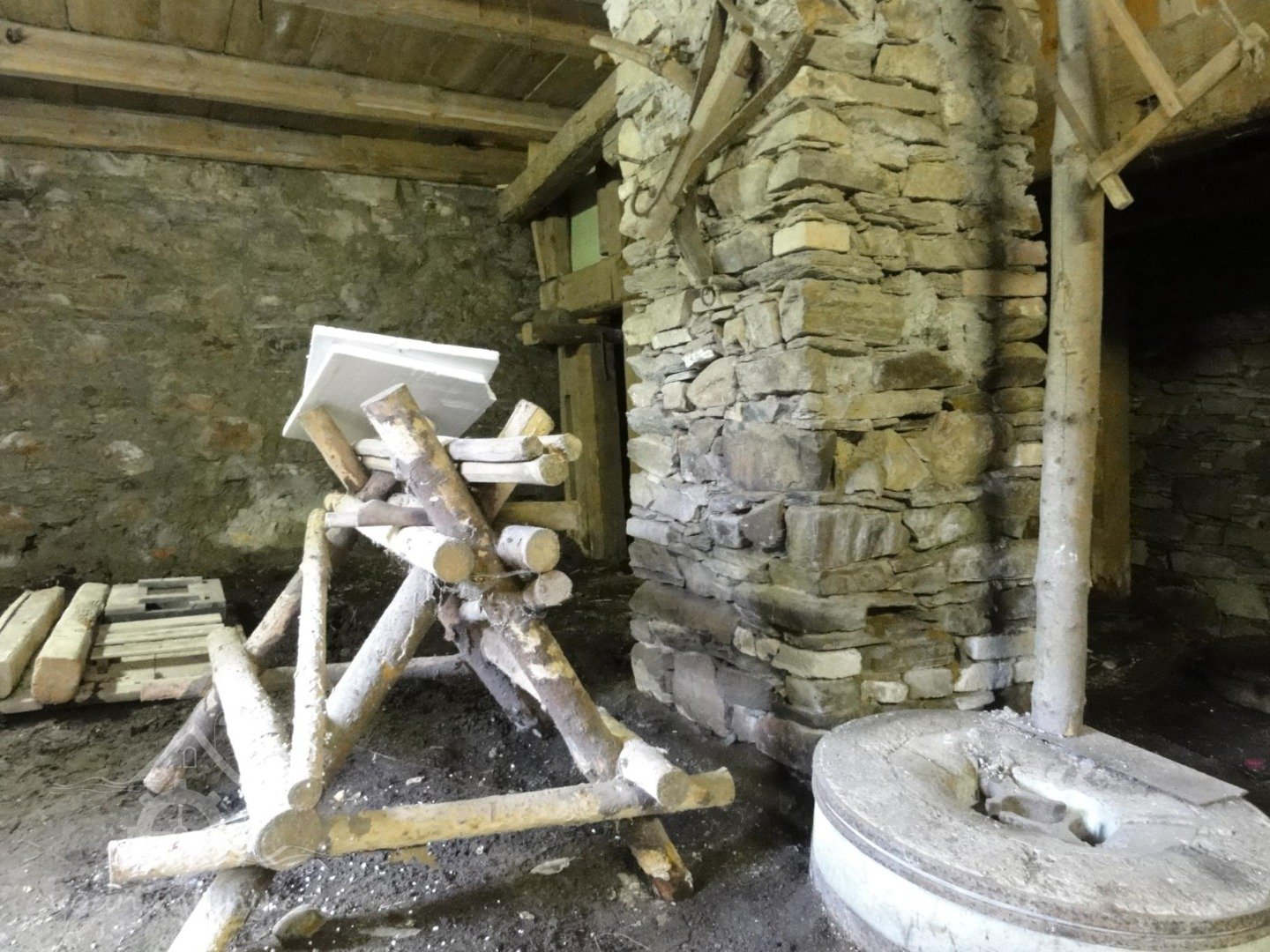 Kolo spodní žene francouzský kámen, jenž je připojen k obyčejnému složení a mimo to pro zvláštní potřeby moučnému cilinku s potřebnými vytahováky.