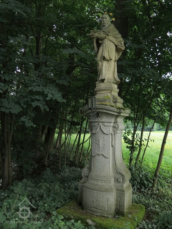 socha sv. Jana Nepomuckého, 07 2016, © Sovicka 169, (Prvky na obrázku: drobné sakrální památky, umělecké prvky (sochy, malby, reliéfy))