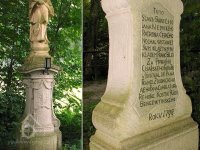 Socha s nápisem, 09 2020, © Vladimír Náhrobní, (Prvky na obrázku: epigrafické památky (nápisy, datování aj.), drobné sakrální památky, umělecké prvky (sochy, malby, reliéfy))