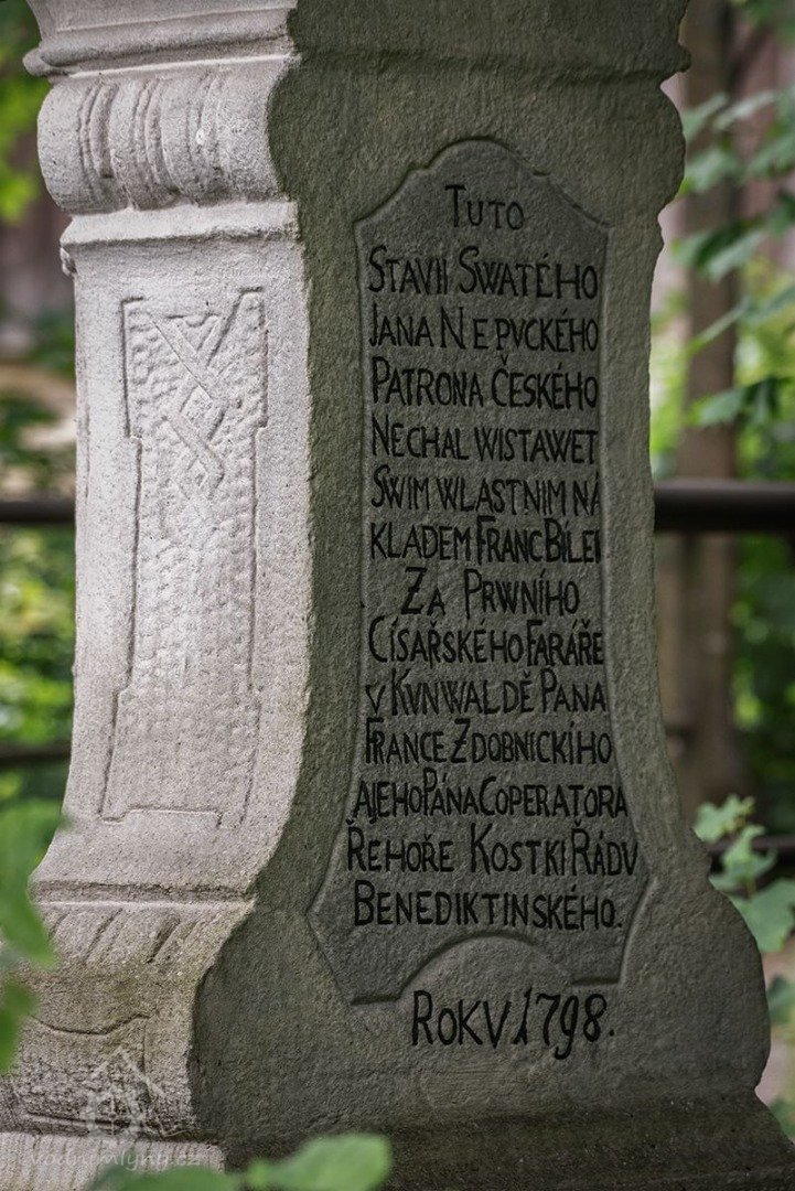 Socha sv. Jana Nepomuckého, 07 2021, © Karel Kučera, (Prvky na obrázku: drobné sakrální památky, umělecké prvky (sochy, malby, reliéfy))