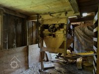 Kamenné složení a válcová stolice, 09 2025, © Jiří Landis, (Prvky na obrázku: kamenné složení (šrotovací, mlecí), válcová stolice, zásobník, násypka)