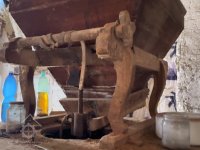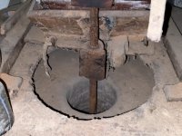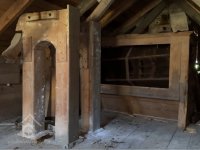 Kamenné složení s násypkou, 08 2025, © Adam Koval, (Prvky na obrázku: kamenné složení (šrotovací, mlecí), zásobník, násypka)
