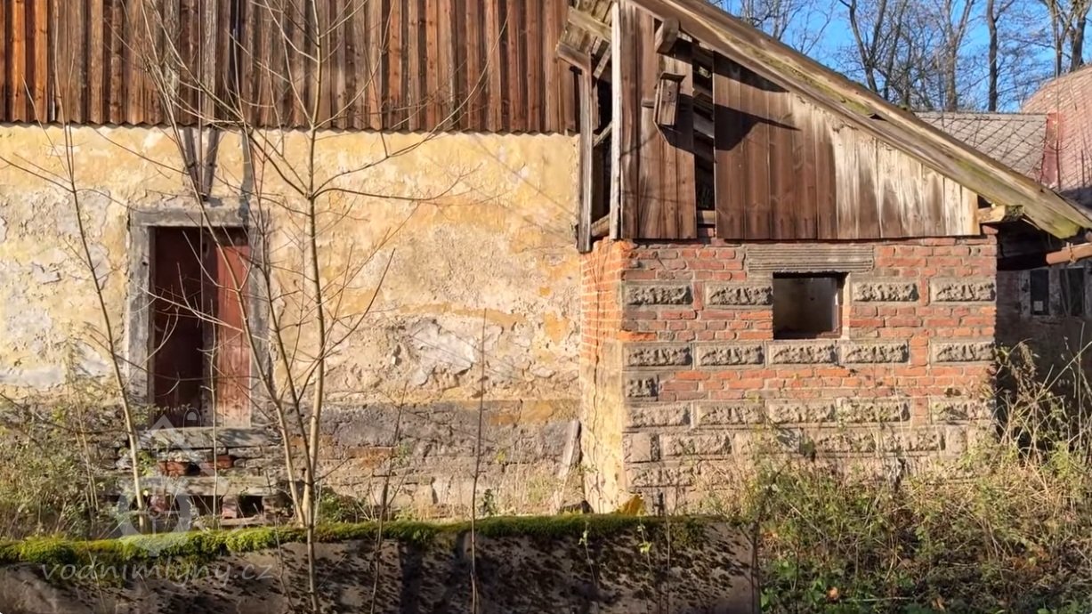 Pohled na mlýn, 03 2024, © Lucida Intervalla, (Prvky na obrázku: plastická omítková výzdoba fasád a štítů, zdobený zděný štít)