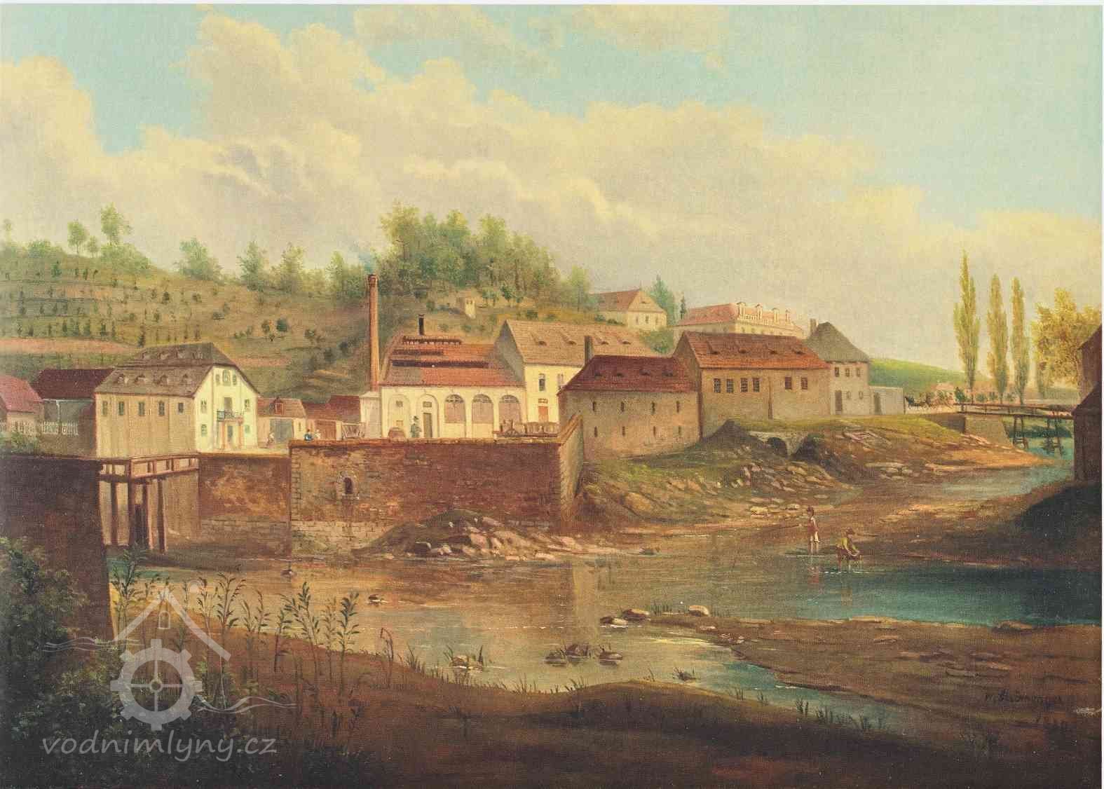 Mlýn je zachycen těsně před zbořením. Obraz uložen v soukromé sbírce, 1949, © F. Kusala
