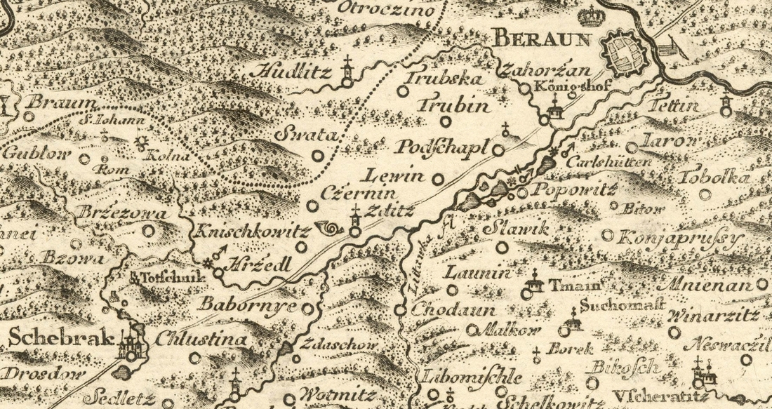 Ukázka Müllerovi mapy (1720). Viz oldmaps.geolab.cz.