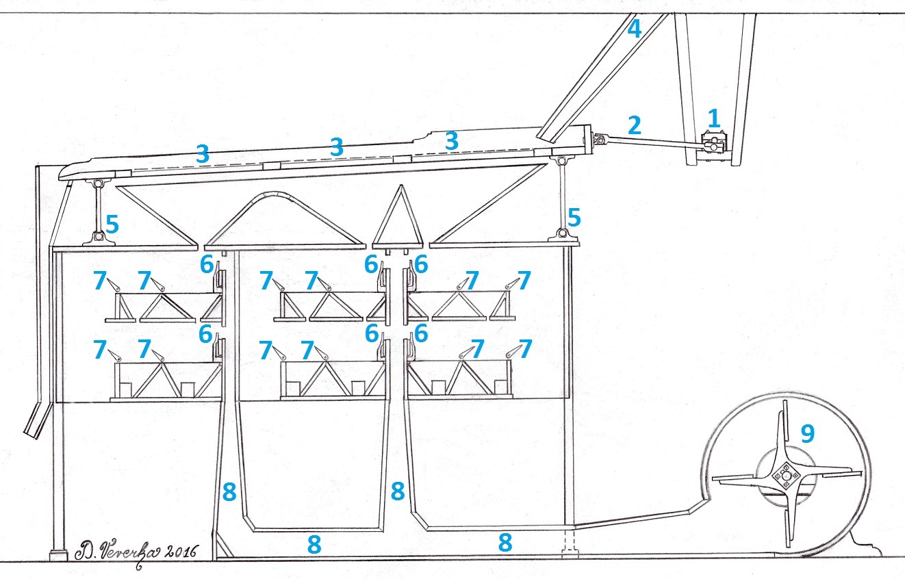 schematické vyobrazení stroje, kresba: David Veverka 2016