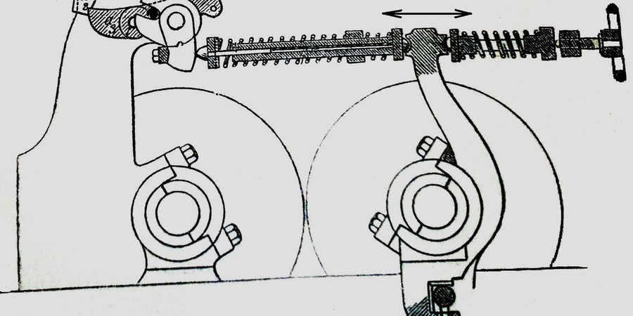 Detail – seřizovací mechanismus válců vedle sebe. Obrázek z časopisu Mlynář, 1905.