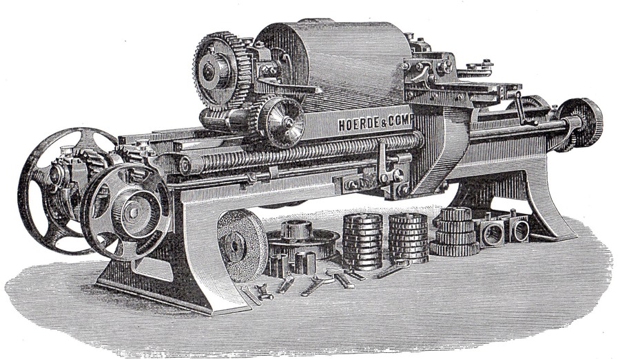 Rýhovačka válců, fa Hoerde a Comp. - Vídeň, r. 1890, obrázek z katalogu firmy.