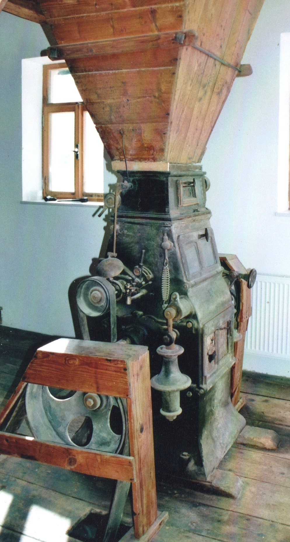 Mlecí stolice s rýhovanými válci z r. 1890, fa J. Hübner -K. Opitz - Pardubice, mlýn Světce čp. 13 (JH), D. Veverka 2012.