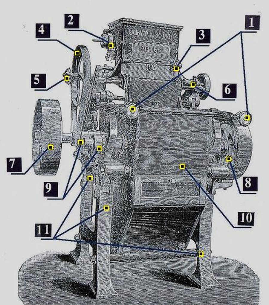 ♦ Stroj našel uplatnění většinou na větších mlýnech s několika stolicemi.