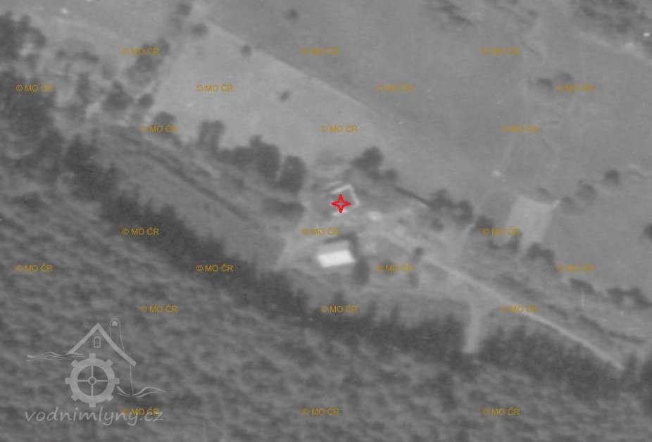Letecký měřický snímek, výřez (mlýn již zmizel), 1947, © lms.cuzk.cz