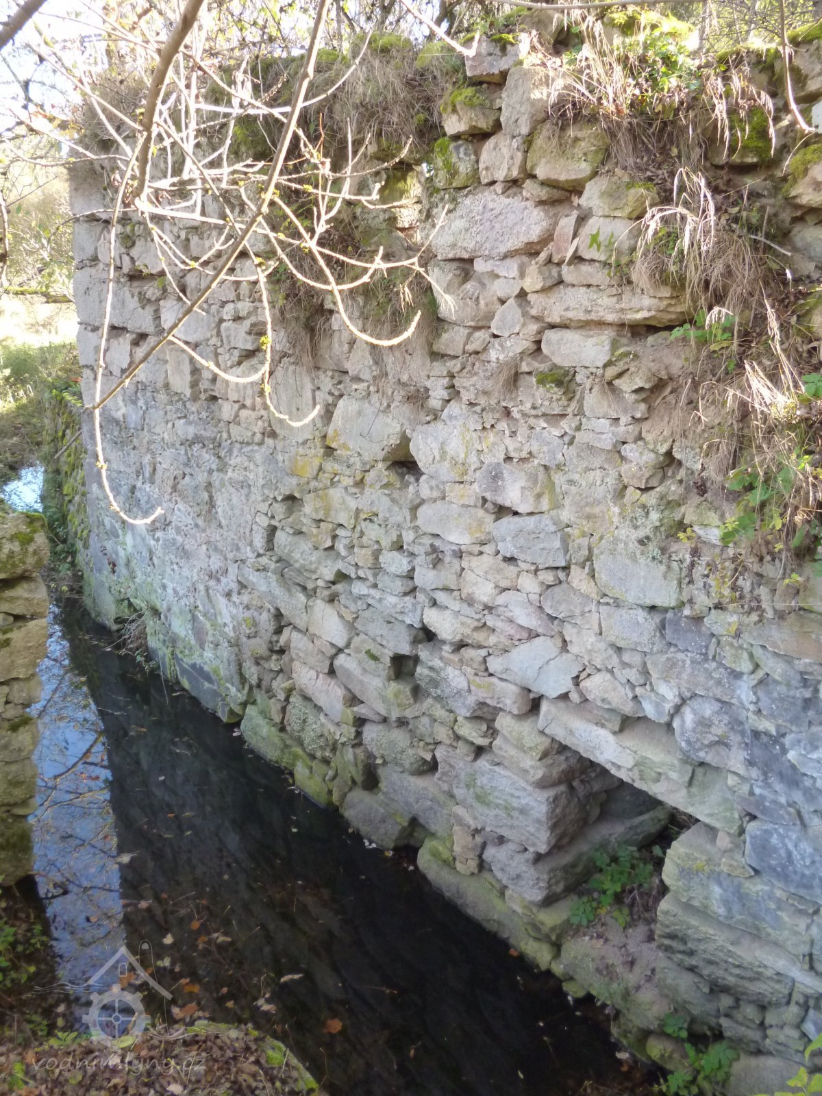 Lednice, torzo návodní zdi s otvorem pro hřídel kola, začátek odtoku, 2019, © Martina Havelková