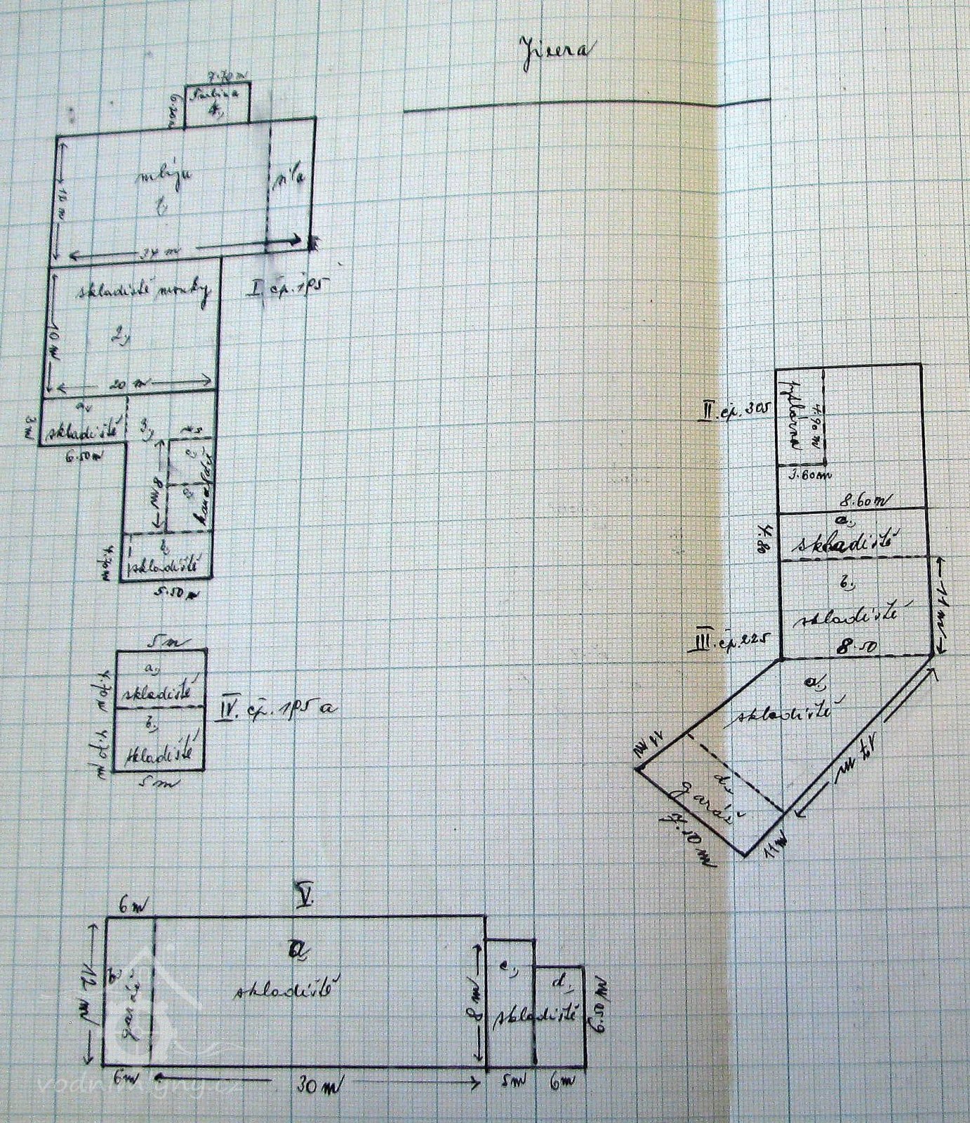Půdorys jednotlivých objektů areálu, cca 1938, © Mlynářské ústředí