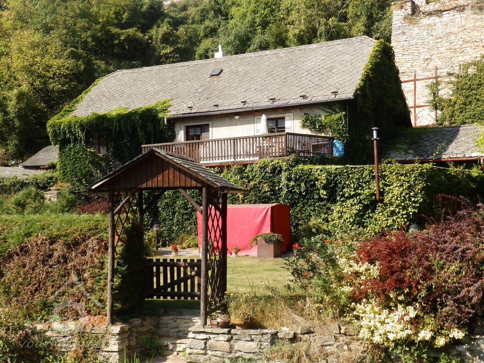 V těchto místech se voda z náhonu dostávala přes vantroky vlevo do lednice, nad mlýnské kolo, 8. 8. 2015, © Renata Šoltová