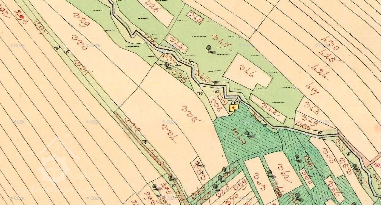S jistotou je mlýn doložen k roku 1804, díky vrchnostenskému dotazníku, kde se mimo jiných věcí uvádí - jeden mlýn na potoku o jednom složení, na velmi nestálej vodě, kor darebný.