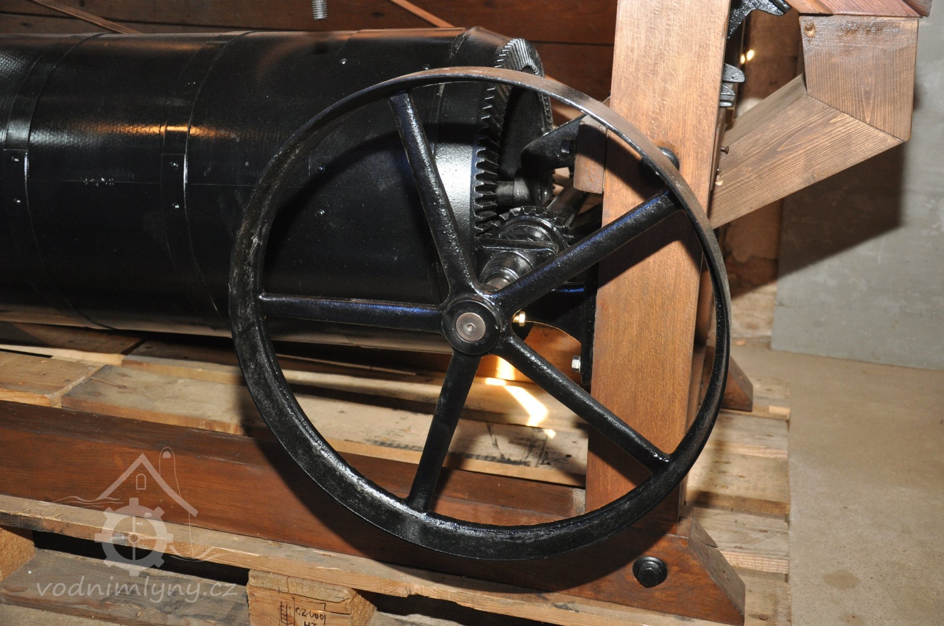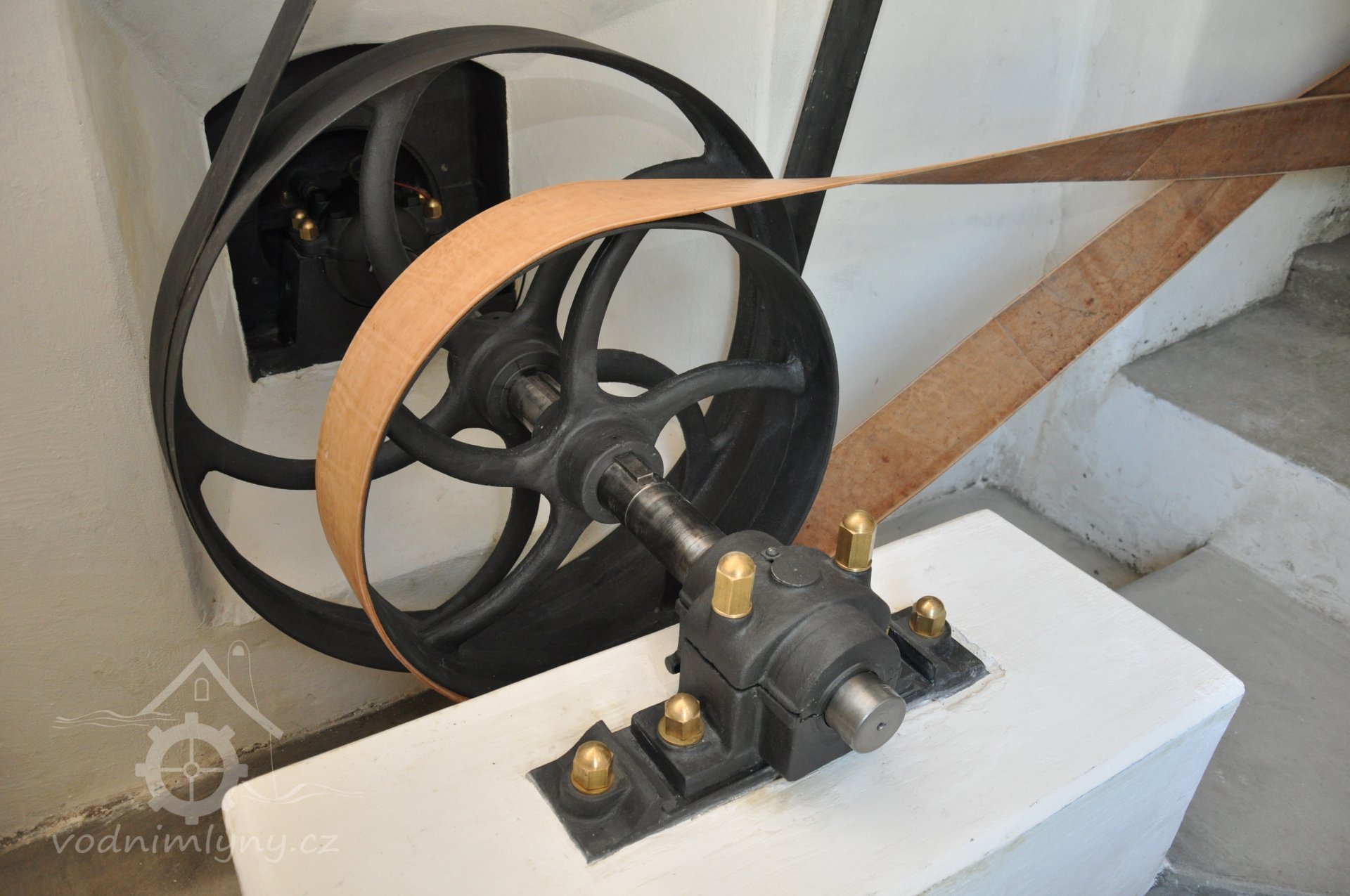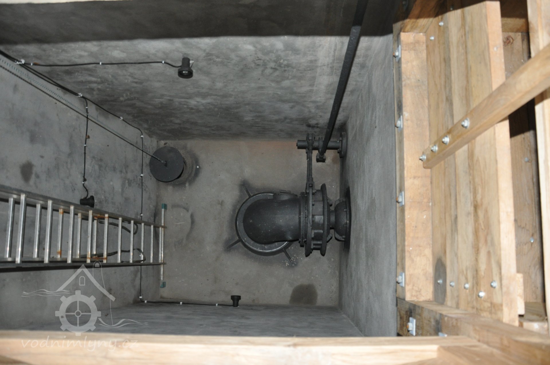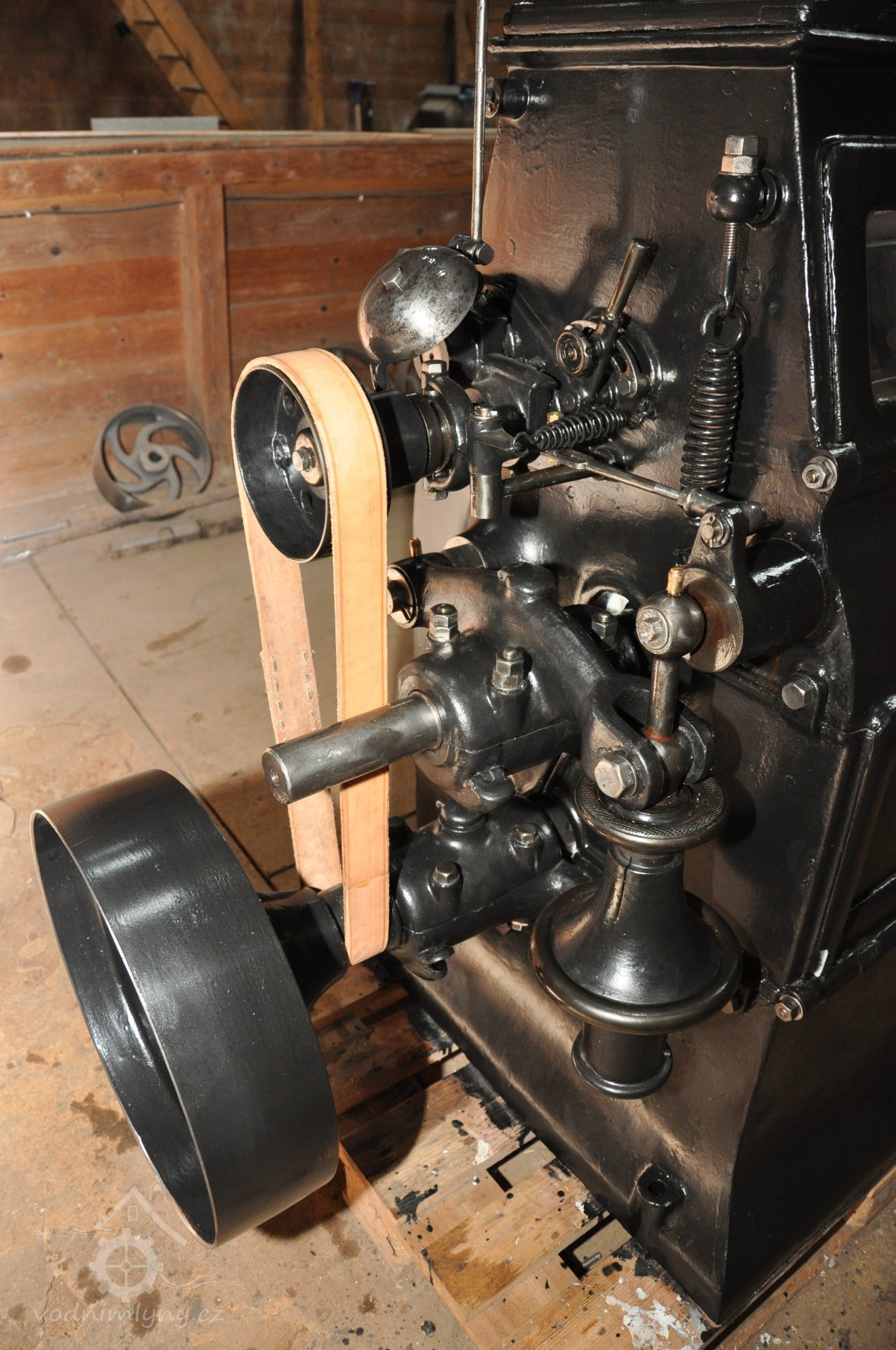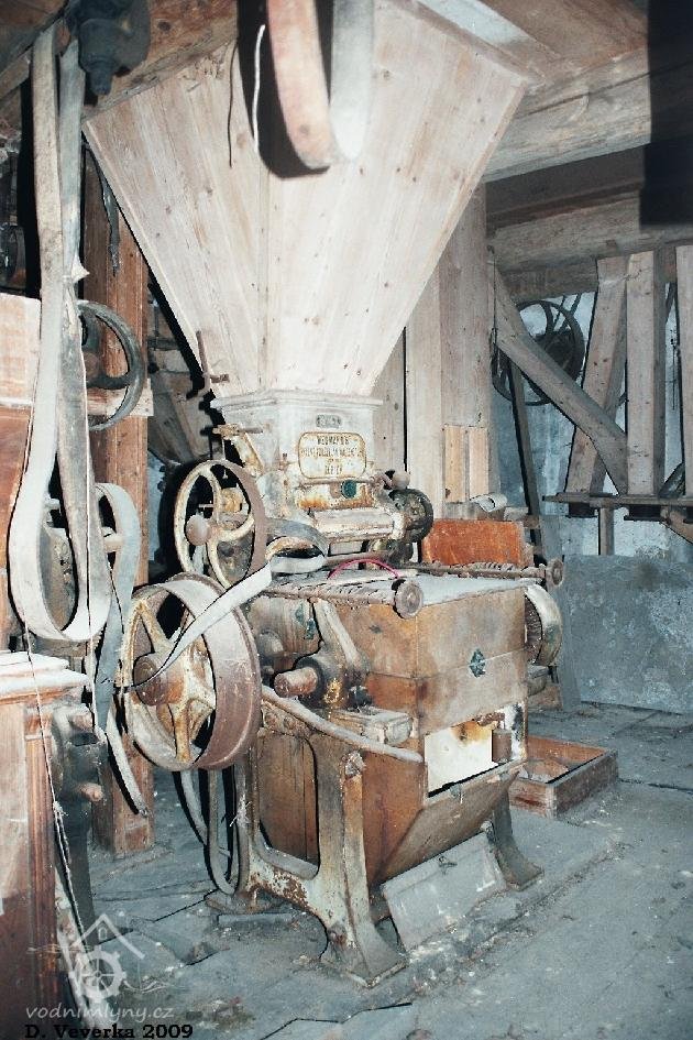 PopisOpravená Francisova kašnová turbína s horizontální hřídelí a tzv. mokrým kolenem. Byla vyrobena mezi rokem 1904 až 1907 nedalekou firmou Hasmann Ondřejovice a firmou Tlach a Keil, později Quissek und Geppert – Javorná, Latzdorf. Narozdíl od ostatních vodních turbín stejného typu má některé ojedinělé konstrukční prvky, zvláštností je pak způsob řešení konstrukce regulace. Turbína bude pohánět asynchronní generátor o instalovaném výkonu 15 kW. Taktéž bude možné turbínou po nahození řemenu hnát celé zařízení mlýna přes transmise. (David Veverka)