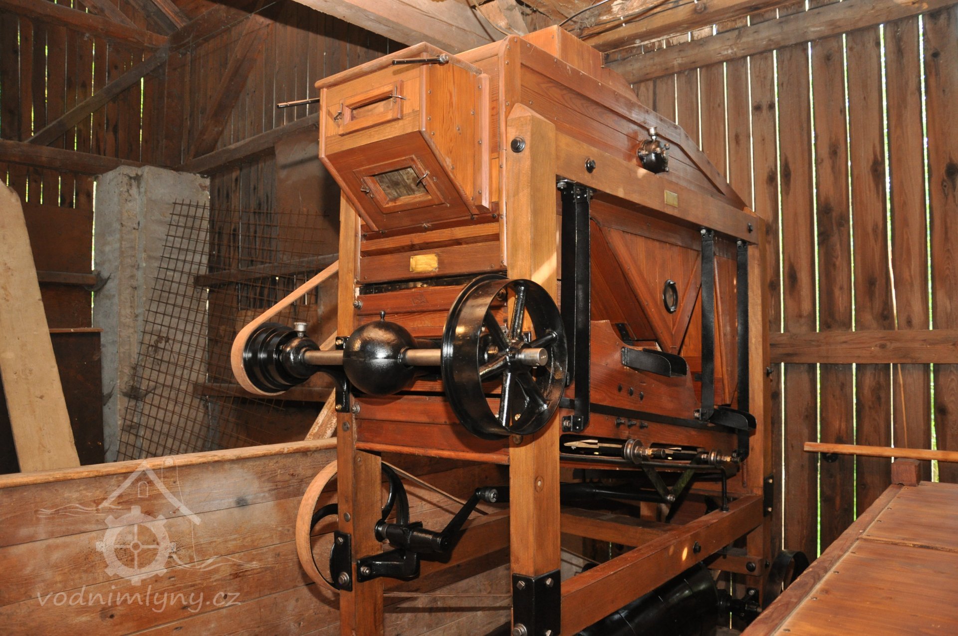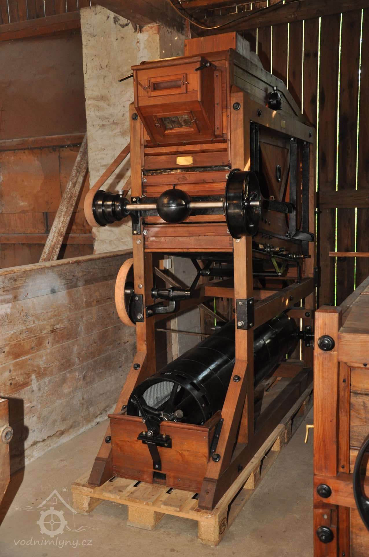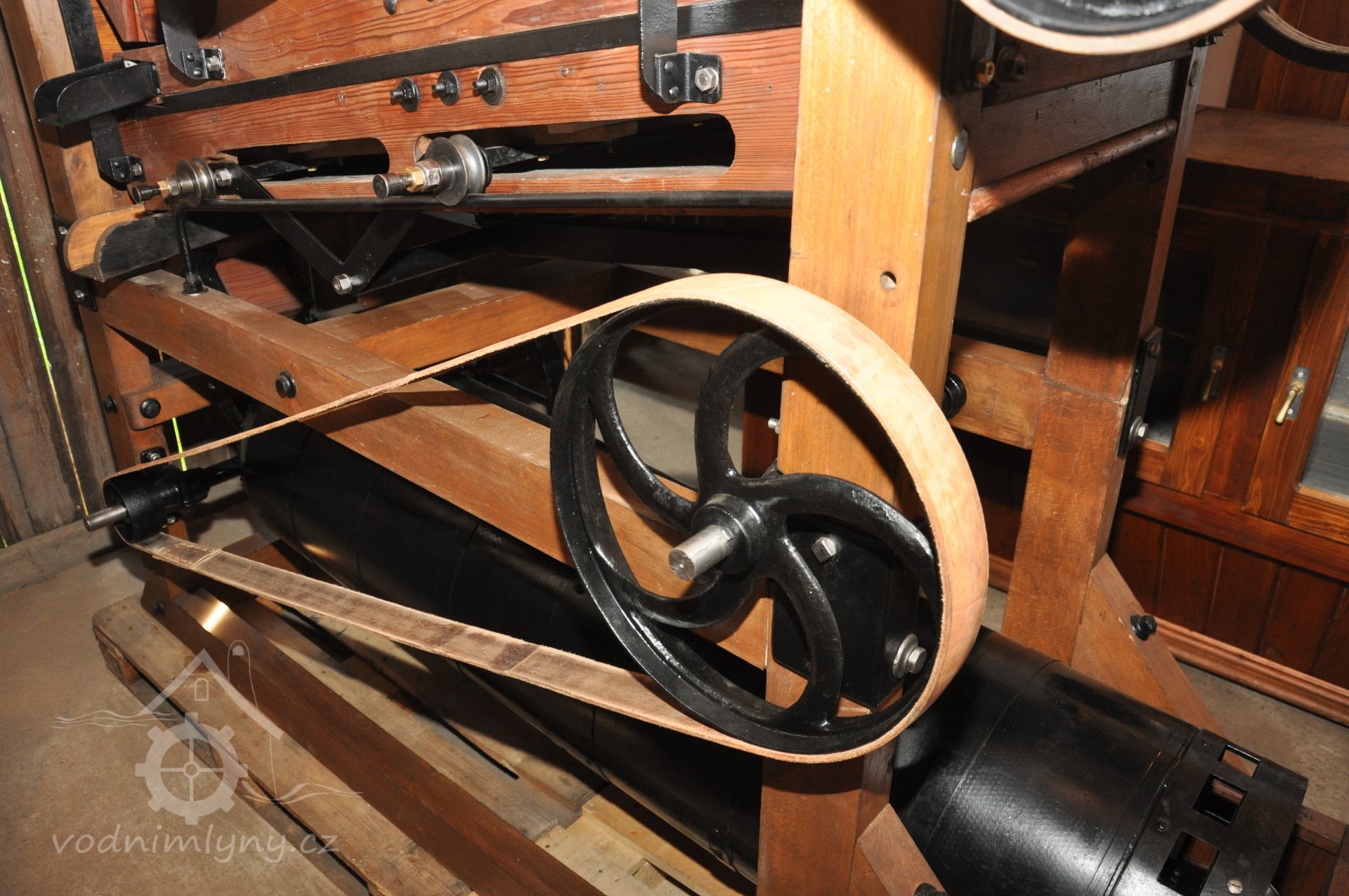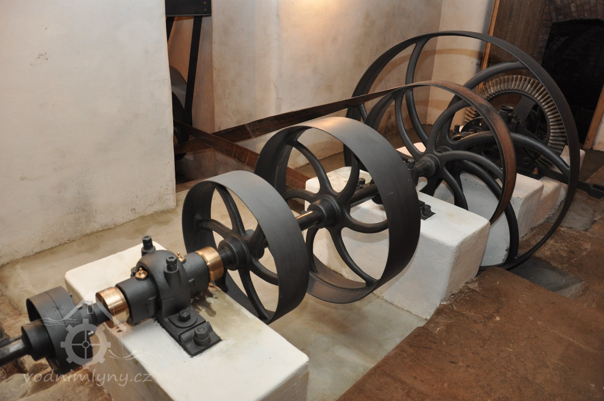 PopisOpravená Francisova kašnová turbína s horizontální hřídelí a tzv. mokrým kolenem. Byla vyrobena mezi rokem 1904 až 1907 nedalekou firmou Hasmann Ondřejovice a firmou Tlach a Keil, později Quissek und Geppert – Javorná, Latzdorf. Narozdíl od ostatních vodních turbín stejného typu má některé ojedinělé konstrukční prvky, zvláštností je pak způsob řešení konstrukce regulace. Turbína bude pohánět asynchronní generátor o instalovaném výkonu 15 kW. Taktéž bude možné turbínou po nahození řemenu hnát celé zařízení mlýna přes transmise. (David Veverka)
