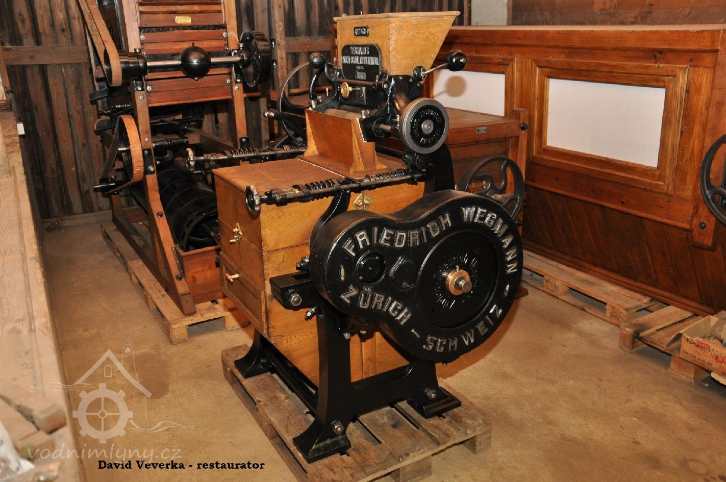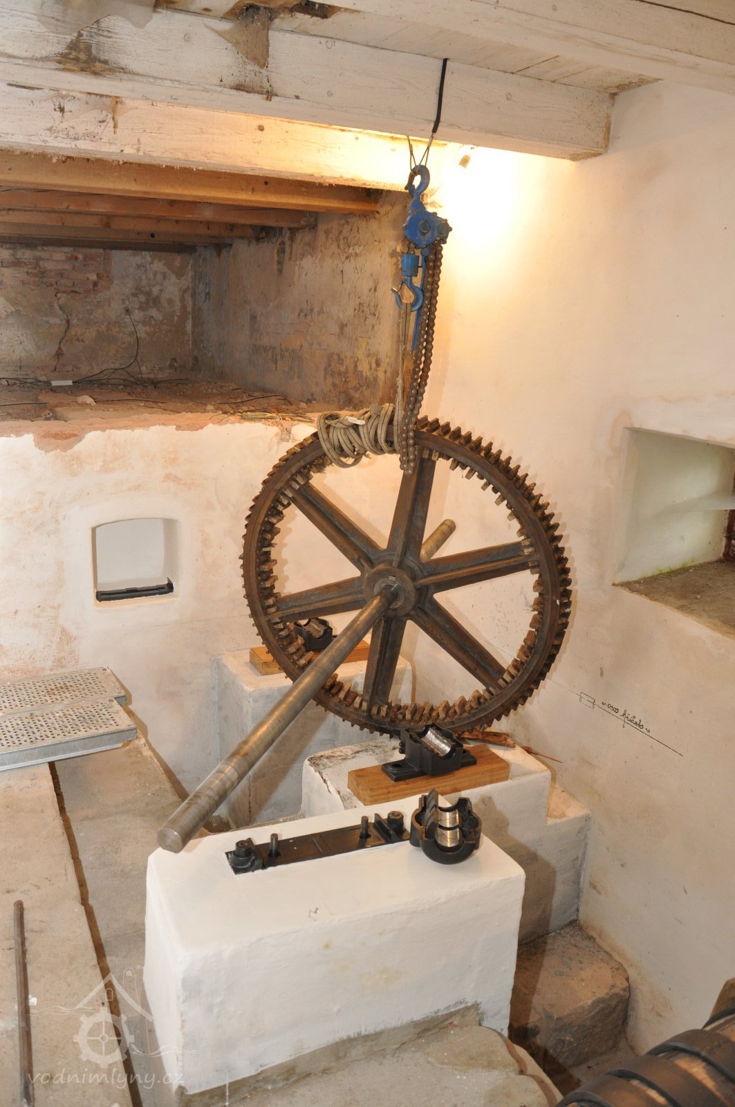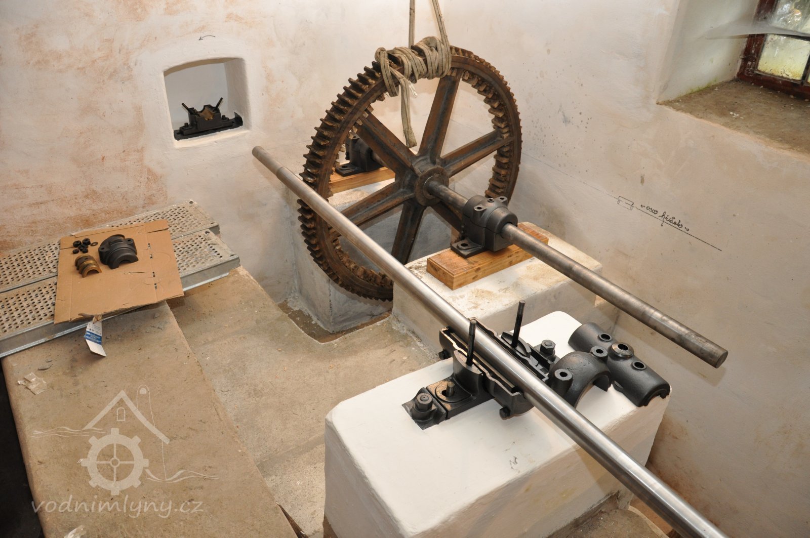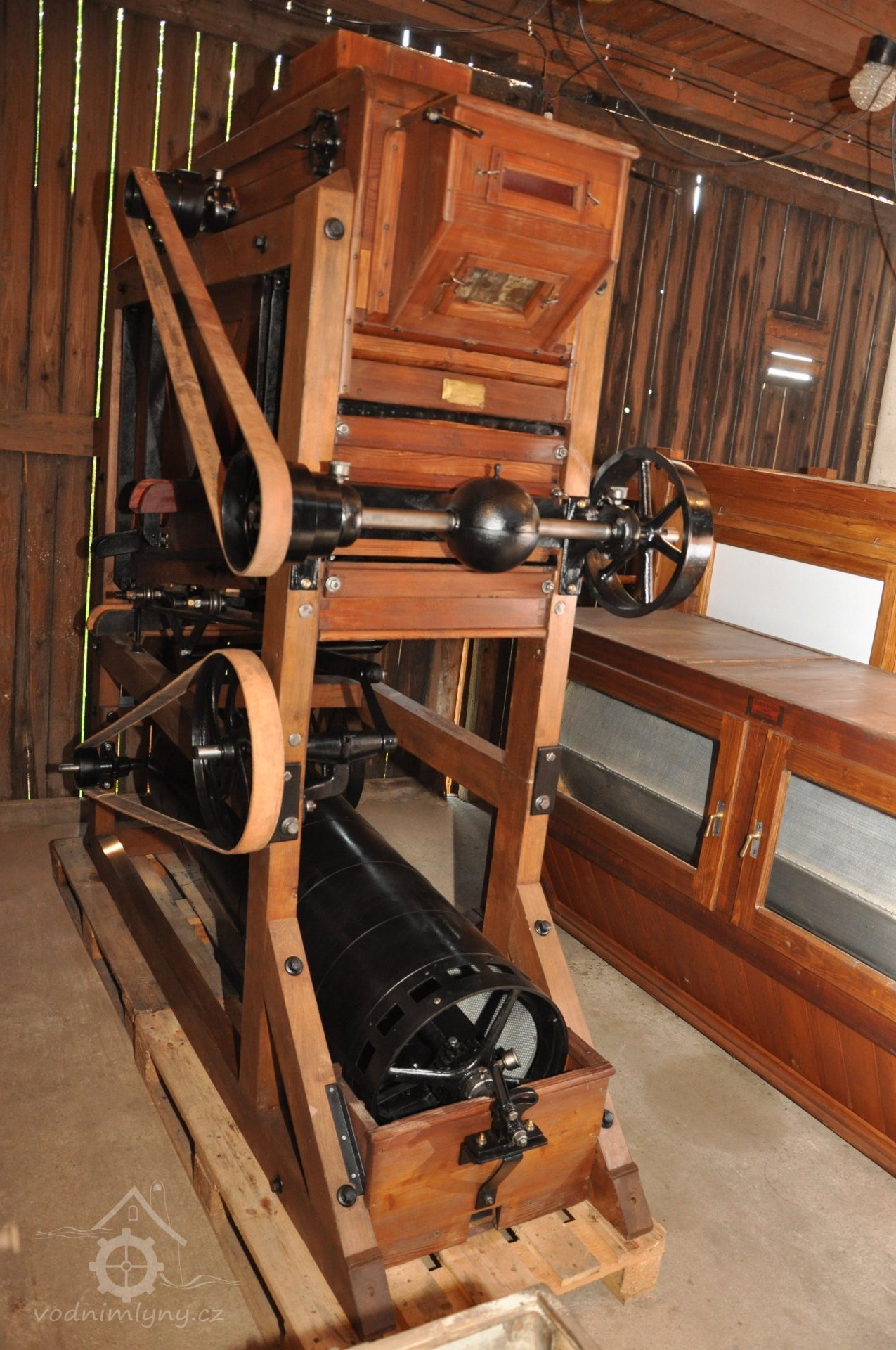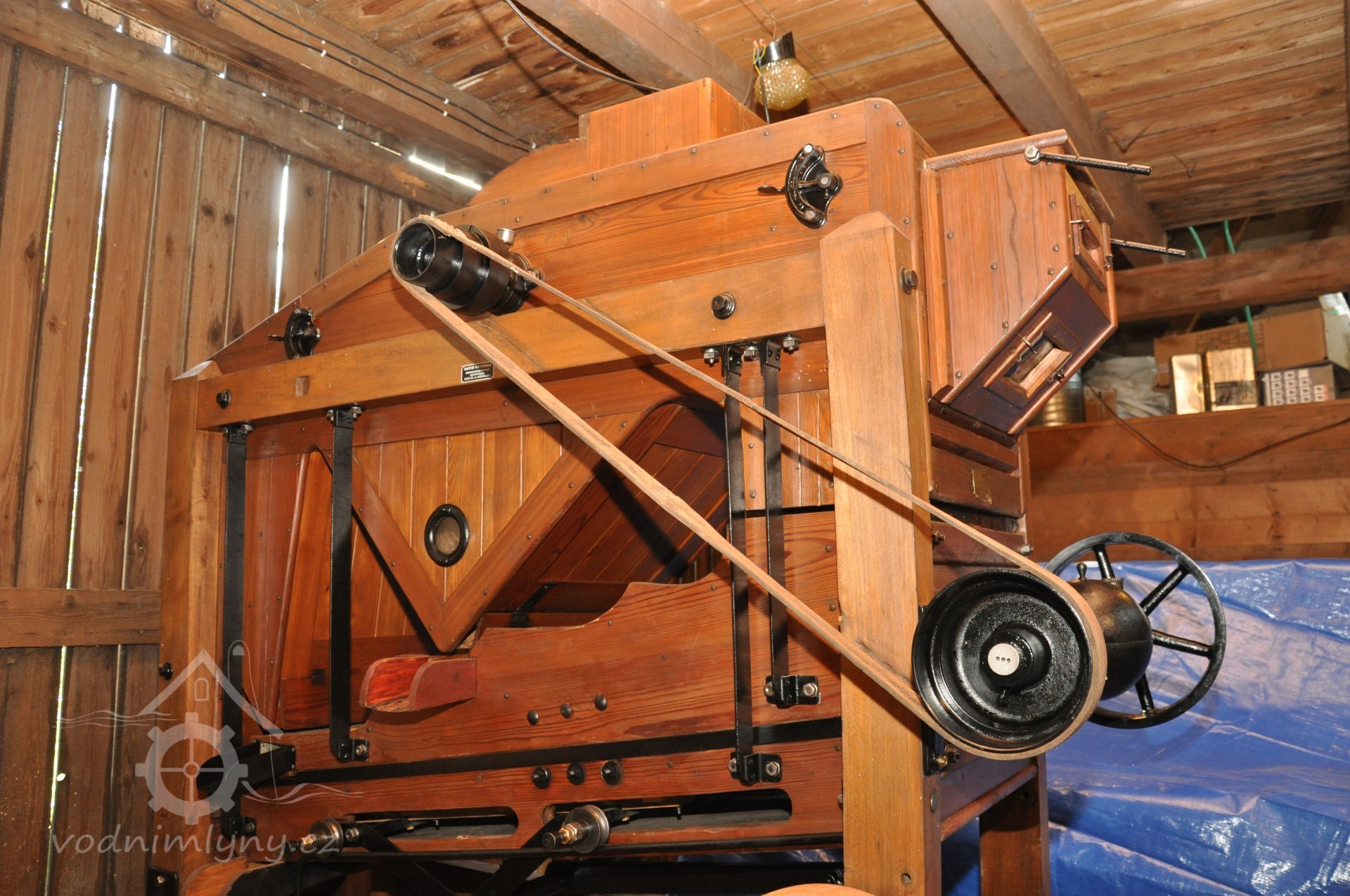 PopisOpravená Francisova kašnová turbína s horizontální hřídelí a tzv. mokrým kolenem. Byla vyrobena mezi rokem 1904 až 1907 nedalekou firmou Hasmann Ondřejovice a firmou Tlach a Keil, později Quissek und Geppert – Javorná, Latzdorf. Narozdíl od ostatních vodních turbín stejného typu má některé ojedinělé konstrukční prvky, zvláštností je pak způsob řešení konstrukce regulace. Turbína bude pohánět asynchronní generátor o instalovaném výkonu 15 kW. Taktéž bude možné turbínou po nahození řemenu hnát celé zařízení mlýna přes transmise. (David Veverka)