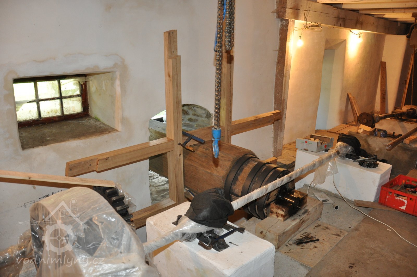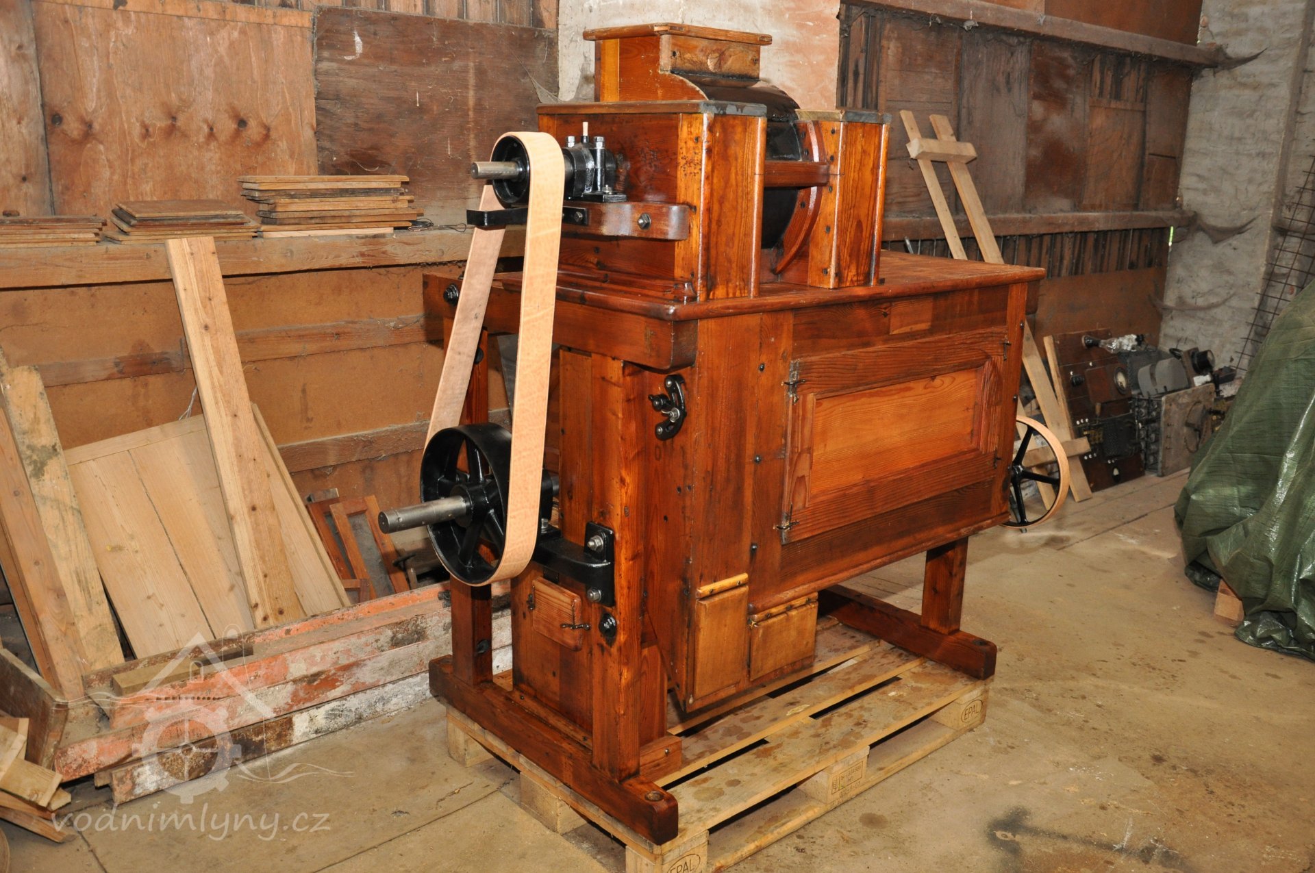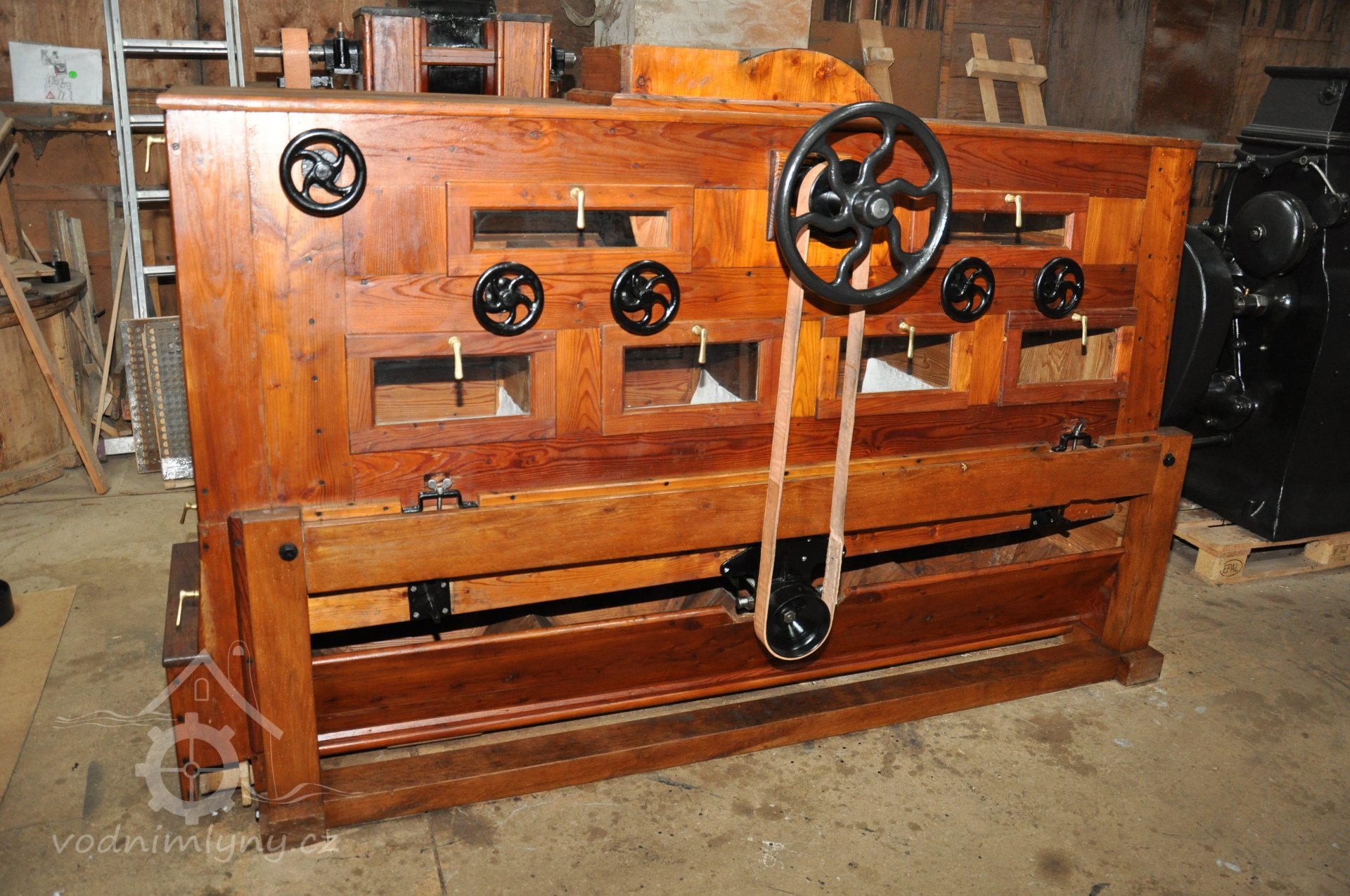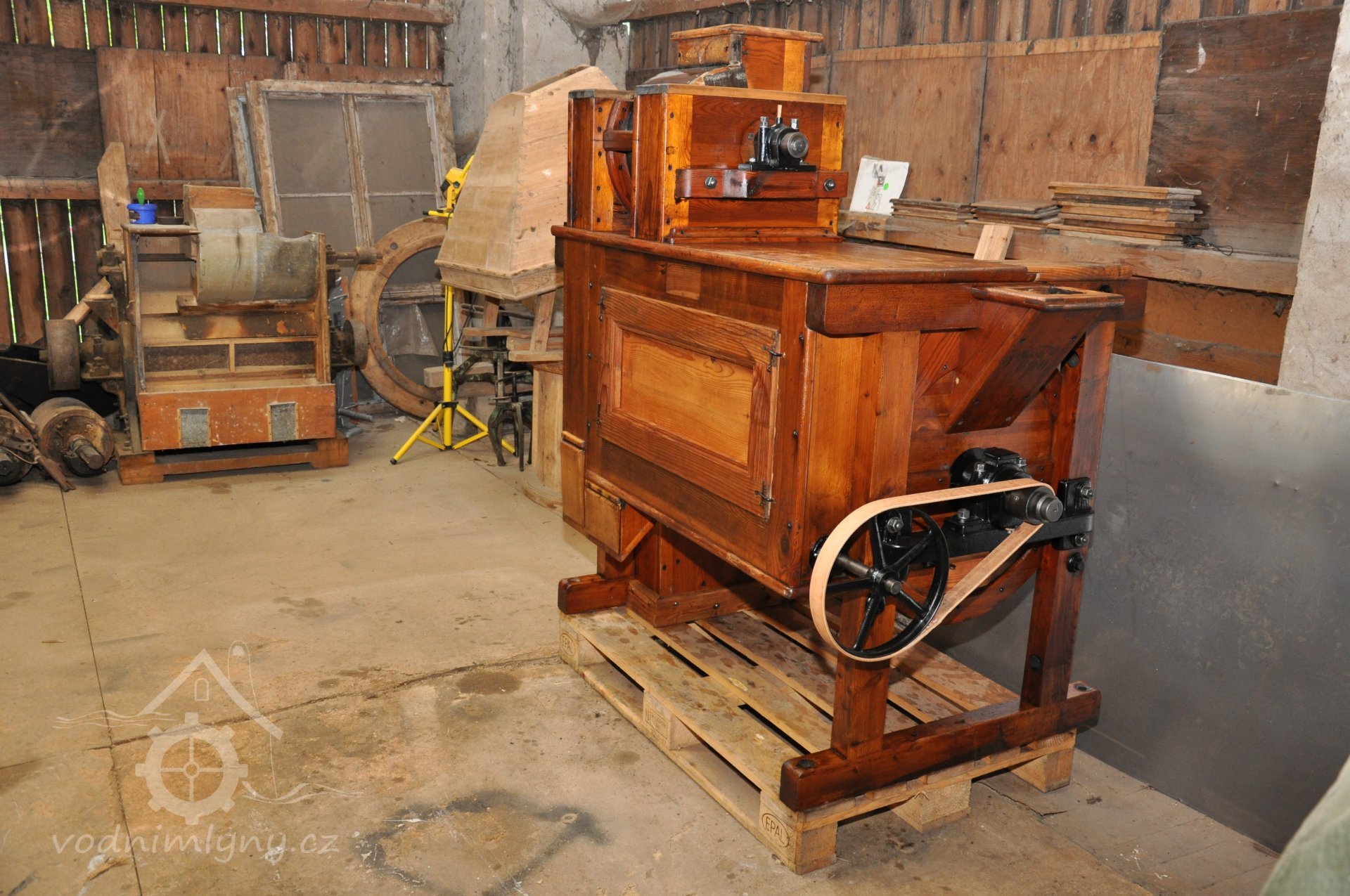 PopisOpravená Francisova kašnová turbína s horizontální hřídelí a tzv. mokrým kolenem. Byla vyrobena mezi rokem 1904 až 1907 nedalekou firmou Hasmann Ondřejovice a firmou Tlach a Keil, později Quissek und Geppert – Javorná, Latzdorf. Narozdíl od ostatních vodních turbín stejného typu má některé ojedinělé konstrukční prvky, zvláštností je pak způsob řešení konstrukce regulace. Turbína bude pohánět asynchronní generátor o instalovaném výkonu 15 kW. Taktéž bude možné turbínou po nahození řemenu hnát celé zařízení mlýna přes transmise. (David Veverka)