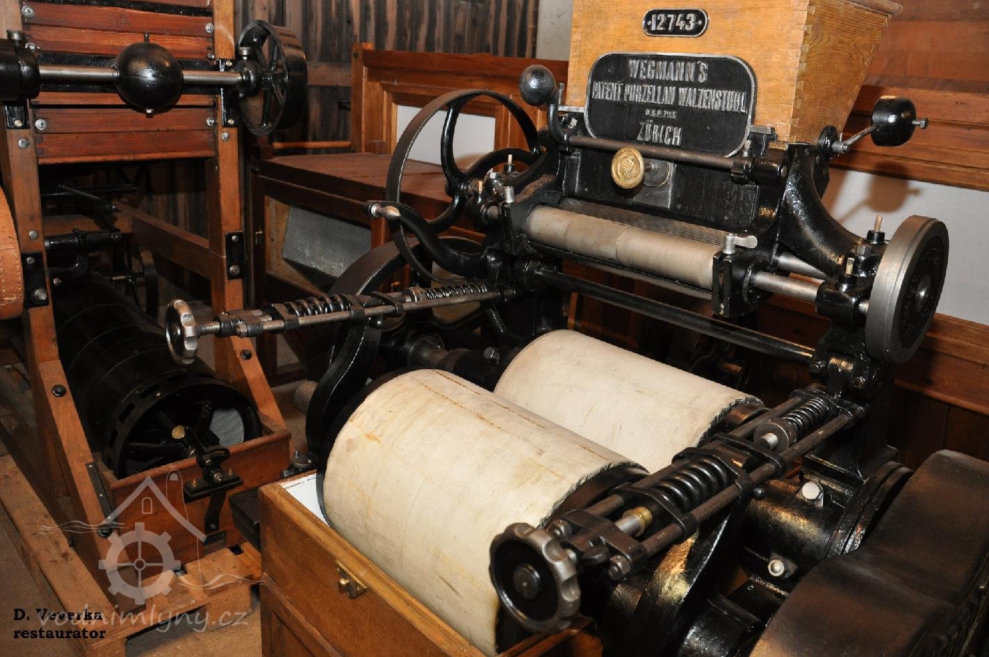 Původní strojní technologie se bohužel dochovala jen částečně, z nichž nejvzácnější je soustava odstředivých vysévačů od výrobce Hanz Wicha -Jägernsdorf (Krnov) . Chybějící stroje budou postupně doplněny v rámci projektu repasé a restaurování původní technologie. V budoucnu by měl mlýn sloužit jako muzeum s funkčními mlýnskými stroji. V roce 2015 bylo obnoveno vodní kolo sekerníkem Františkem Mikyškou se synem. Převody, transmise a strojní zařízení postupně opravuje restaurátor David Veverka od roku 2014. Nyní jsou zrenovovány do plně funkčního stavu stroje: válcová mlecí stolice Union - České Budějovice (modelová řada r. 1910 - 1915), dále: původní průchodová loupačka od regionálního výrobce Leiter, reforma z počátku 20. stol., hranolové vysévače výrobce Hanz Wicha - Krnov, dále čistírenský stroj aspiratér se žejbry od výrobce Ferdinand Tesařík - Křižanovice u Slavkova, magnet a koukolník - triér firmy Mayer a spol. - Heumar u Kölnu. (DV)