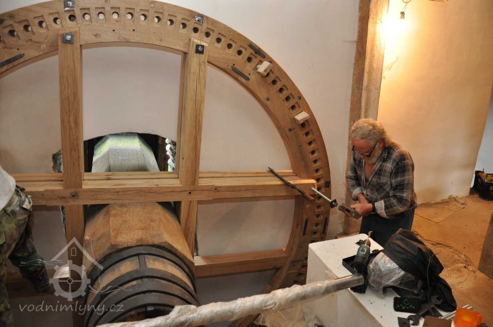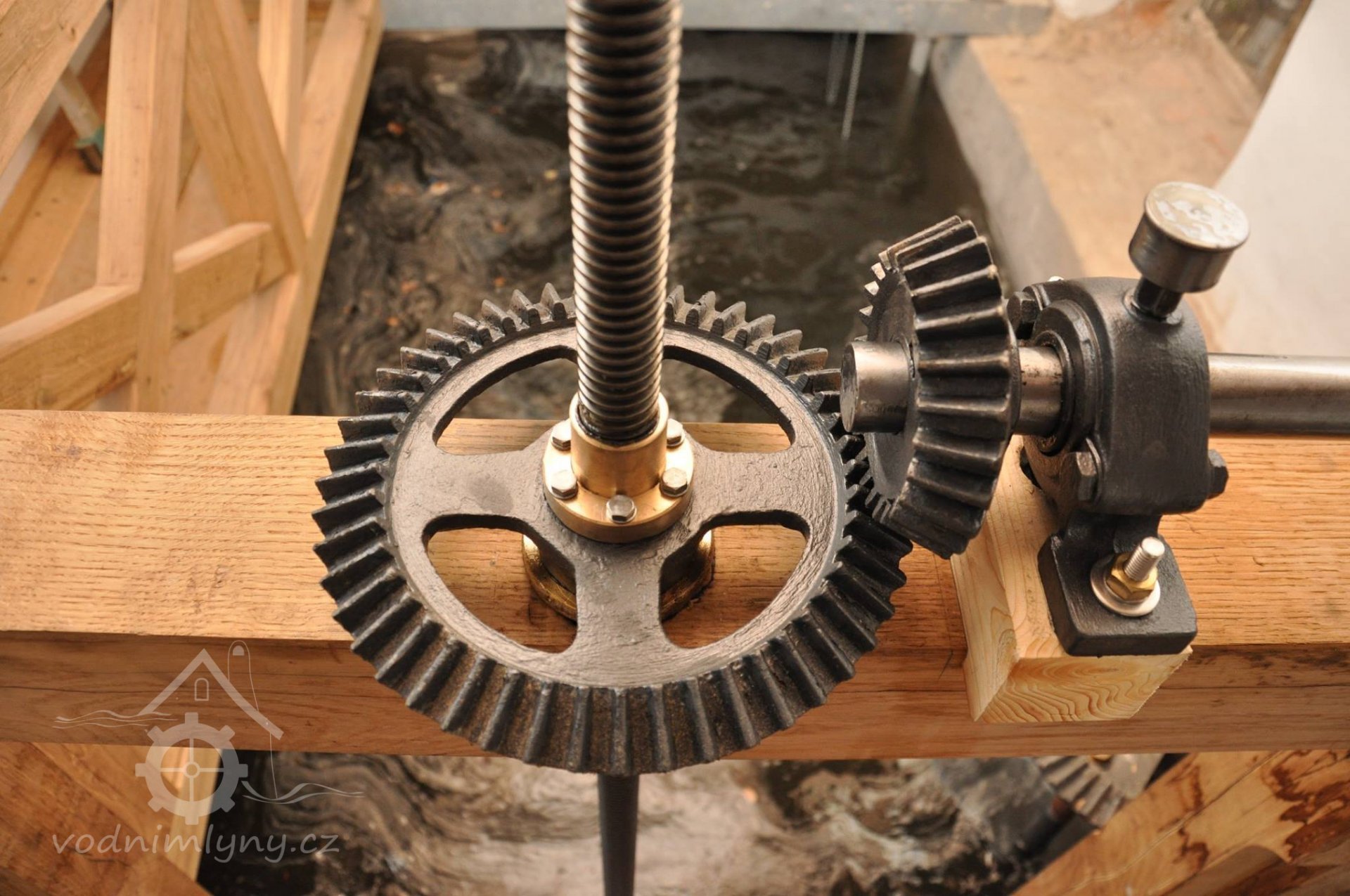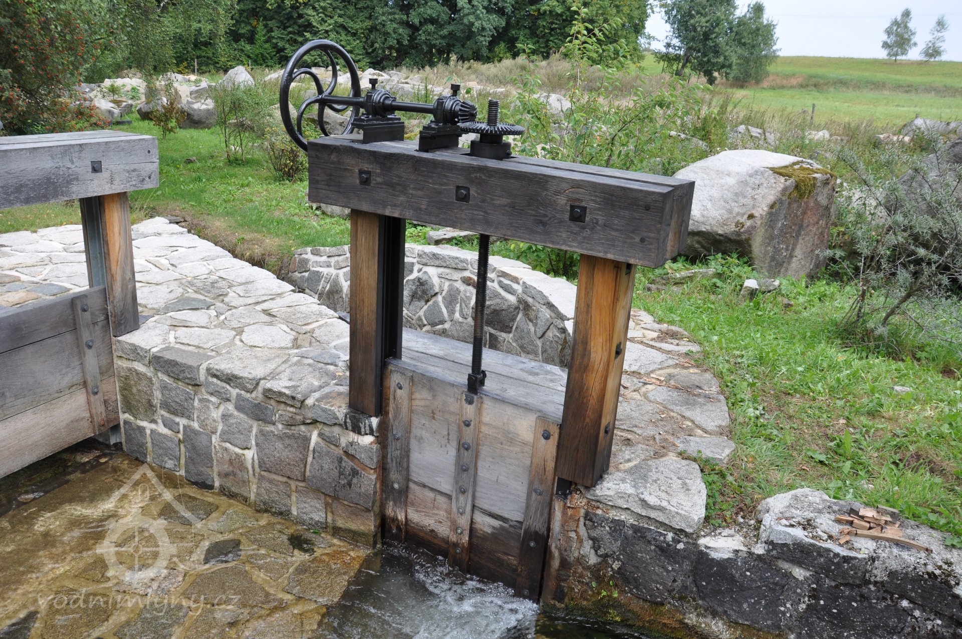 PopisObnovené vodní kolo na vrchní vodu.