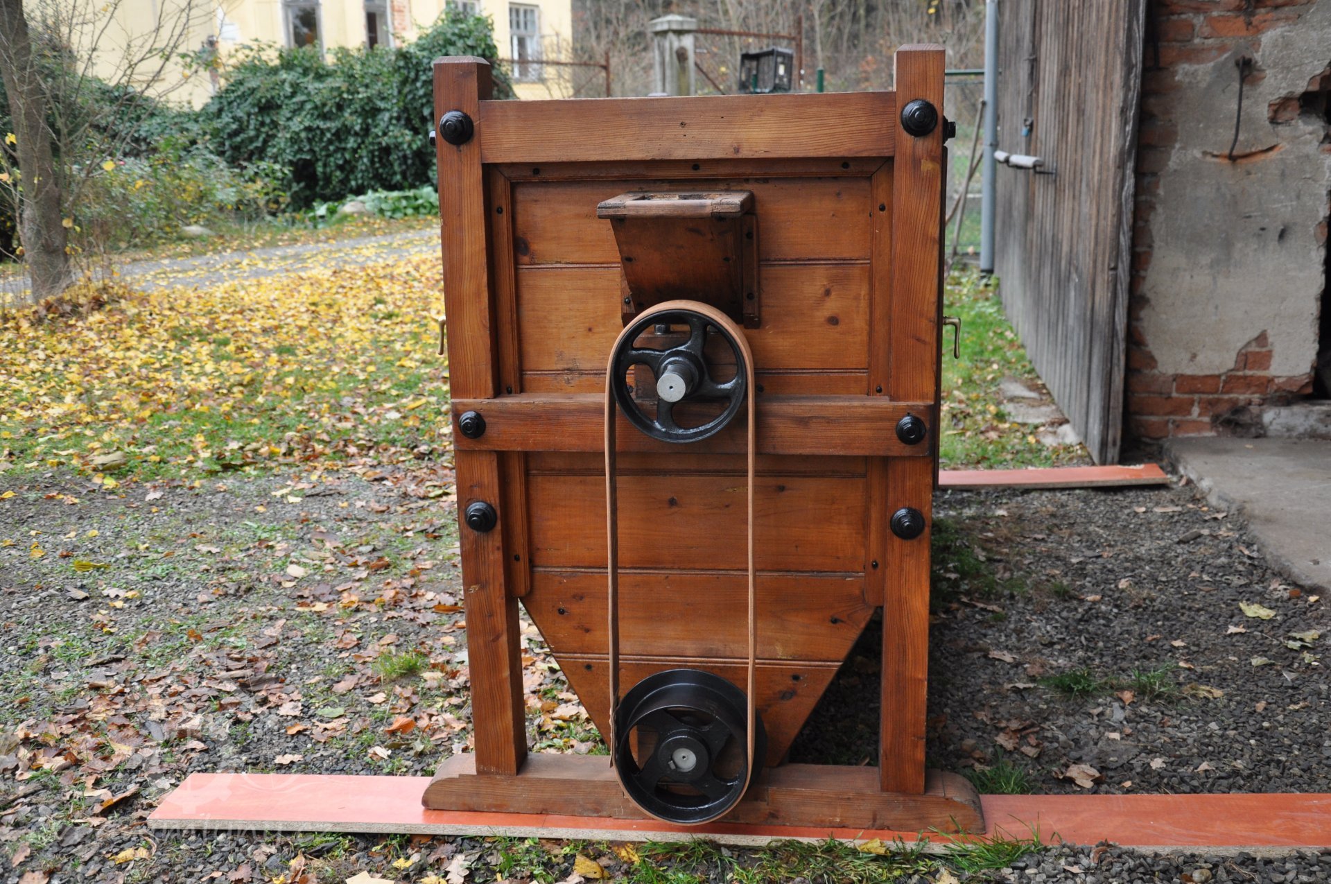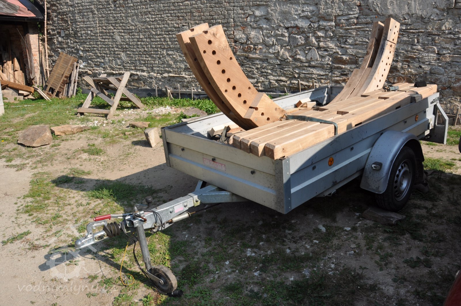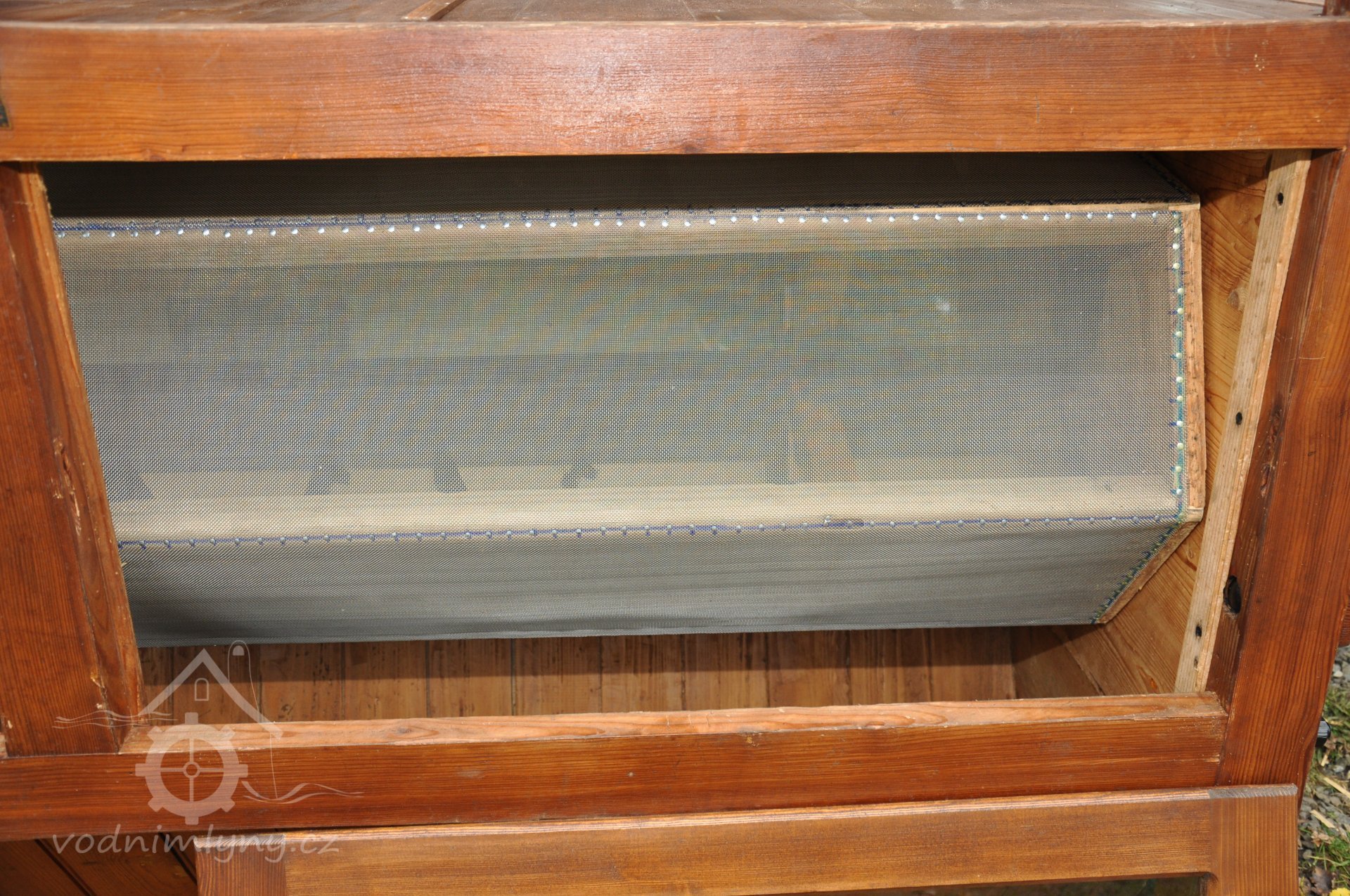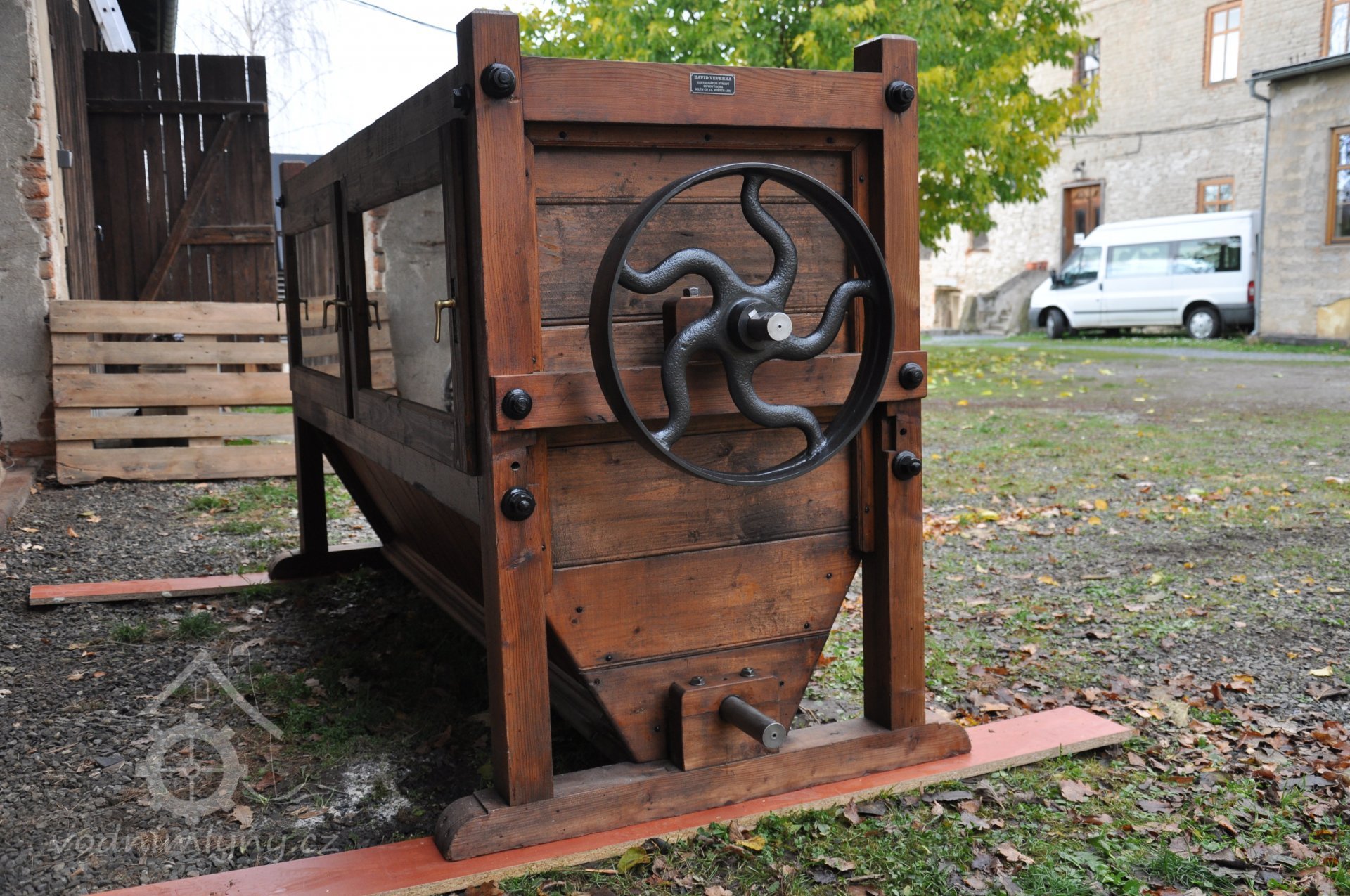 PopisObnovené vodní kolo na vrchní vodu.