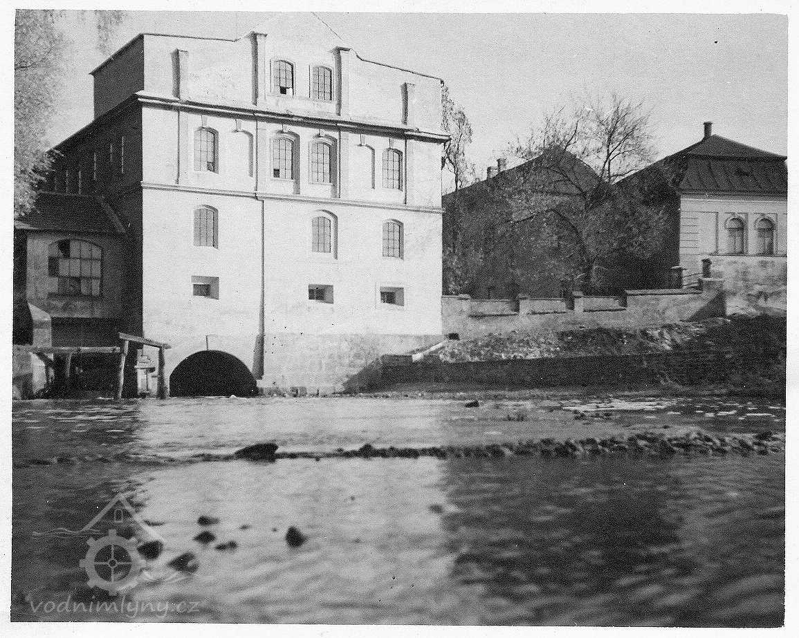 Vodní mlýn je připomínán již od sedmdesátých let 14. století, v 16. století měl údajně osm moučných kol. Byl několikrát přestavován a jeho rozsáhlý renesanční objekt, vybudovaný z pískovce a více než z poloviny postavený na pilotech, je jádrem dnešního mlýna, jenž byl od roku 1876 rozšířen a postupně zmodernizován. K roku 1930 patřil mlýn Františku Říhovi, v provozu byly 1 turbína Girard (22 HP), 1 turbína Jonval (70 HP) a 1 kolo na vrchní vodu (18 HP). Dnes je zde nové vodní dílo se čtyřmi turbínami typu MT 5 o celkovém výkonu 60 kW.