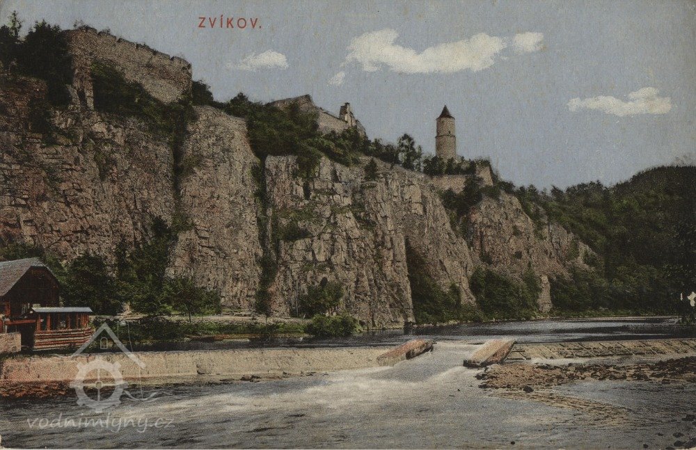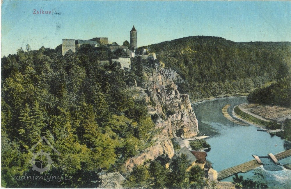 Mlýn stál pod jezem na pravém břehu Otavy, hned za Otavskou bránou, která umožňovala vstup do podhradního mestečka od přívozu z levého břehu Otavy. Připomíná se v r. 1432 jako nově vystavěný. Často byl poškozován povodněmi, zaznamenána je oprava v r. 1440. v r. 1512 byla ve mlýně instalována nová kamna. Celý nový mlýn se opět stavěl v letech 1546-1547 mlynářem Jírou z Tábora a zedníkem Janem z Písku. Z této stavby se patrně dochovala část zdiva se sgrafitem až do 20. století. V roce 1574 měl mlýn tři kola na spodní vodu a jeden stupník a jeho hodnota se odhadovala na 500 kop grošů českých. Posledním zvíkovským mlynářem byl Arnošt Pulz, který zemřel na Štědrý den r. 1918 a je pohřben na oslovském hřbitově. Za necelé dva roky po jeho smrti byl mlýn zbořen.