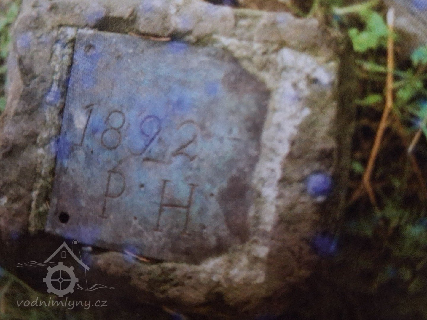 Na hrázi rybníka se zachoval vodní cejch: nízký kamenný sloupek s mosaznou destičkou, na které je letopočet 1892 a iniciály P.H. (mlynářka Petronila Hamplová).
