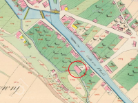 Odpadní strouha delší než náhon, u kapličky křižovala státní silnici a u Penny marketu ústila do Oslavy.