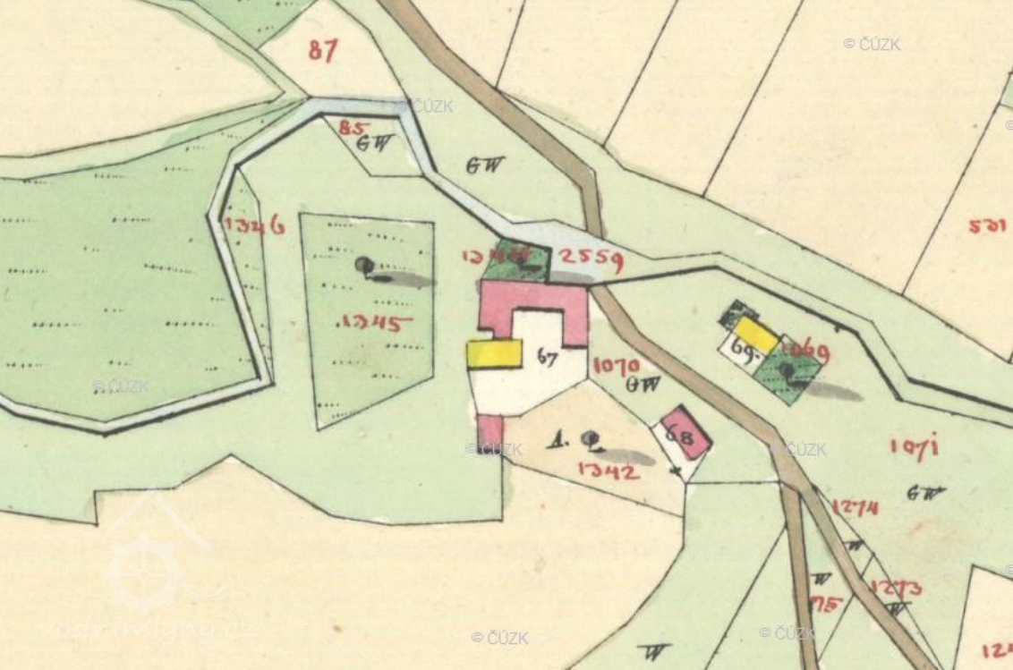 Malý, již dávno nefunkční mlýn za mostkem u cesty do Osového.